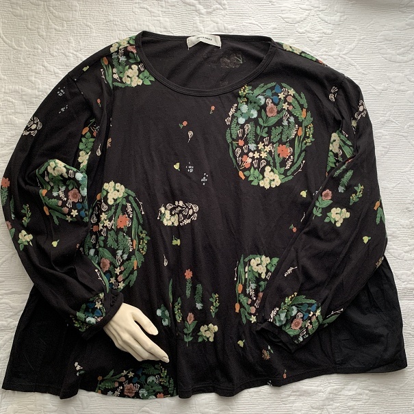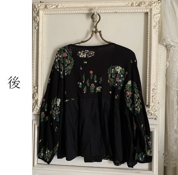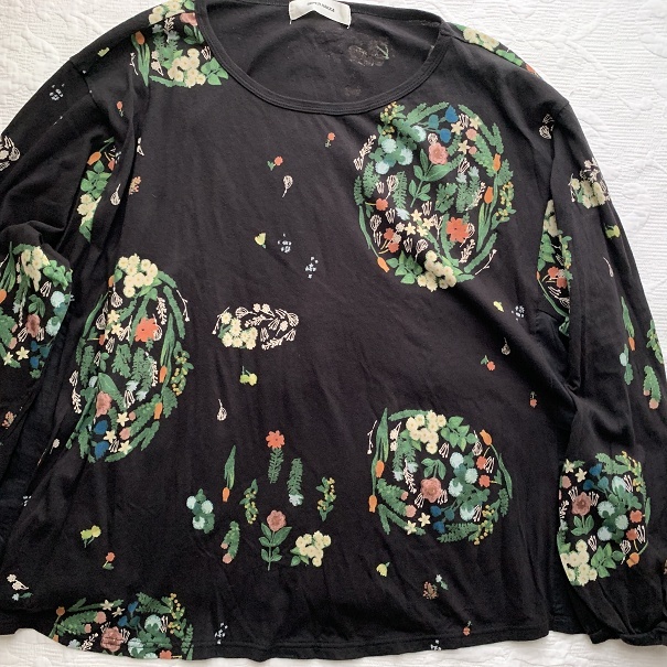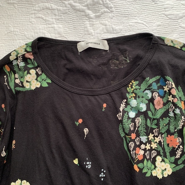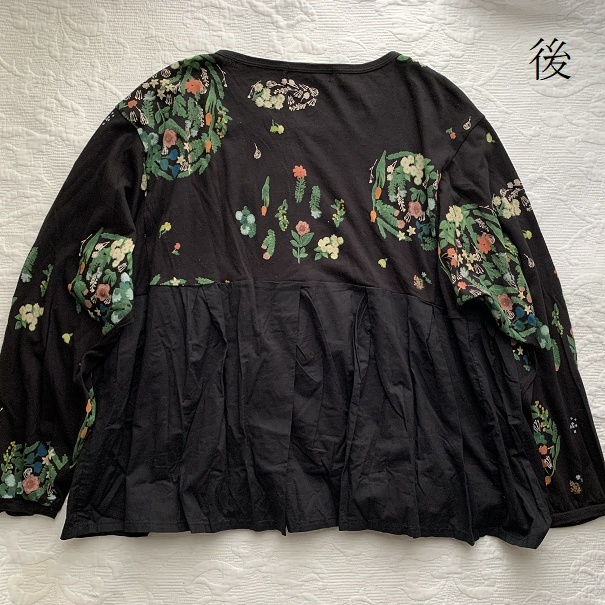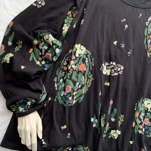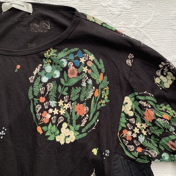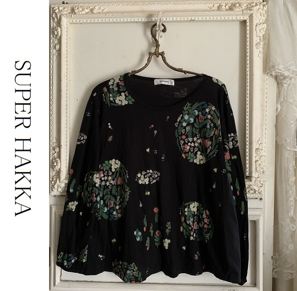 SUPER HAKKA スーパーハッカ 花柄 綿 コットン カットソー ゆったりプルオーバー 長袖 黒 ブラック フラワーモチーフ