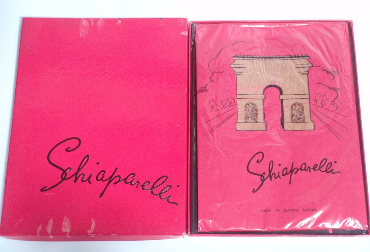 ★未使用【スキャパレリ ガーターストッキング】箱・パッケージ付 1950年代? 昭和レトロ ヴィンテージ ショッキングピンク Schiaparelli