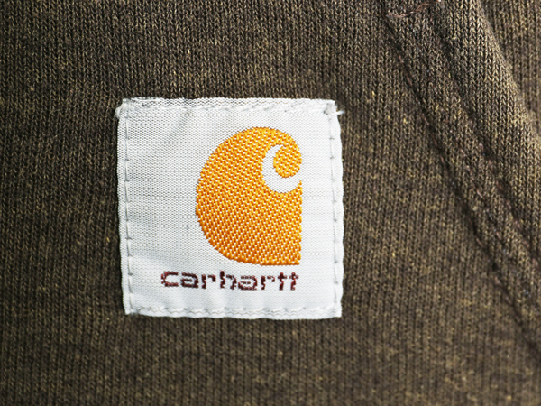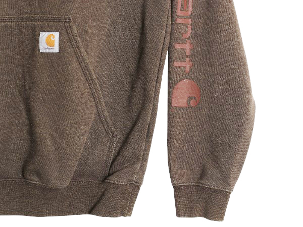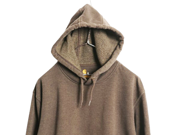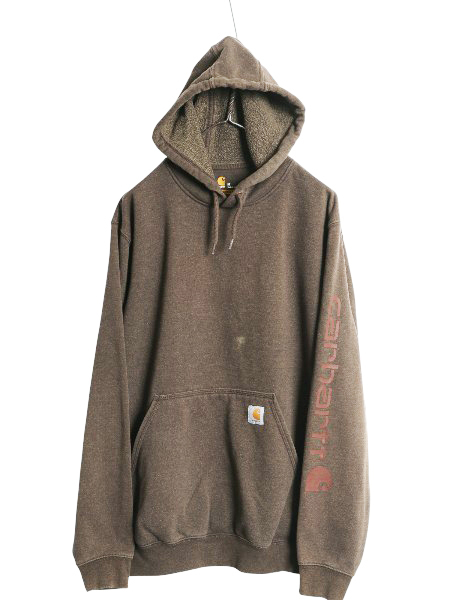 商品名 | カーハート スウェット フード パーカー メンズ M / 古着 袖 プリント トレーナー 裏起毛 プルオーバー ミドルウェイト シンプル ブラウン |
