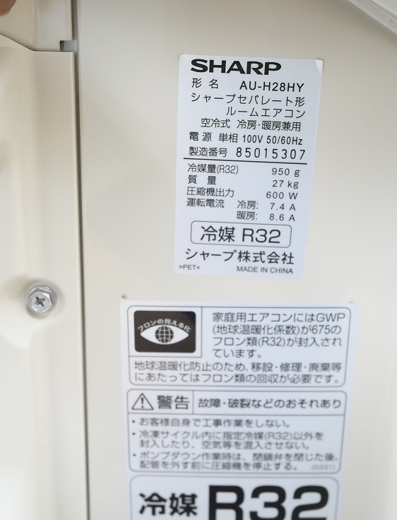 【未使用品】【室外機のみ】シャープ製/ルームエアコン/10畳用/AU-H28HY(7090679-5/7)