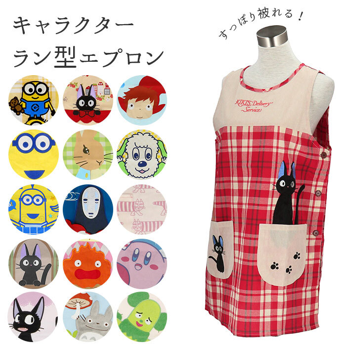 商品説明 | ・大人気キャラクターの世界観がてんこ盛り!毎日のお料理が楽しくなるエプロンが登場! ・刺繍やダイカットなど、他とはひと味違ったデザインが個性的。 ・すっぽり頭から被って、左脇に並んだボタンで着脱。体の広い範囲を覆うのでお洋服も汚れずに安心。 ・ランニング型のエプロンだから細い肩紐タイプとは違い、肩がこりにくいのも嬉しい。 ・フロントには使いやすいポケットも配置。見た目の楽しさだけでなく使い勝手も抜群! |