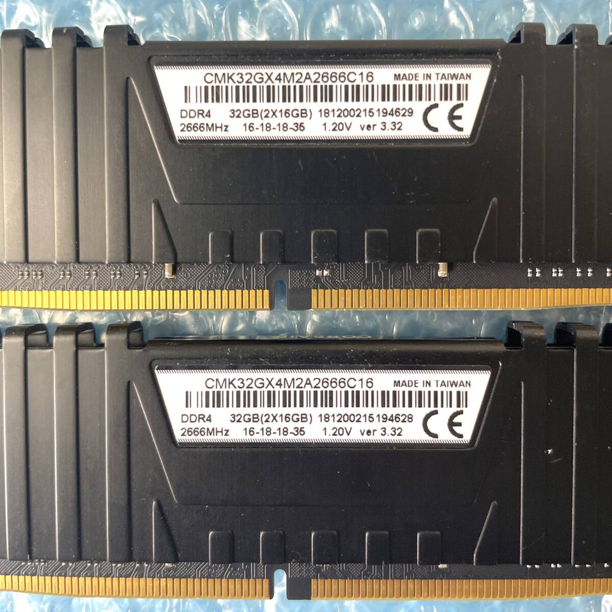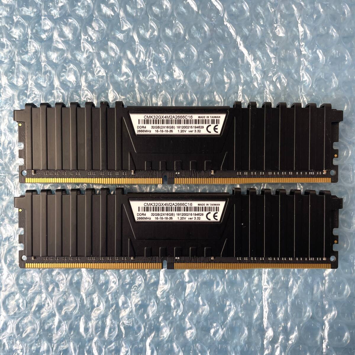 CORSAIR VENGEANCE LPX 16GB×2枚 計32GB DDR4 2666MHz デスクトップ メモリ BIOS確認済み【DM-735】