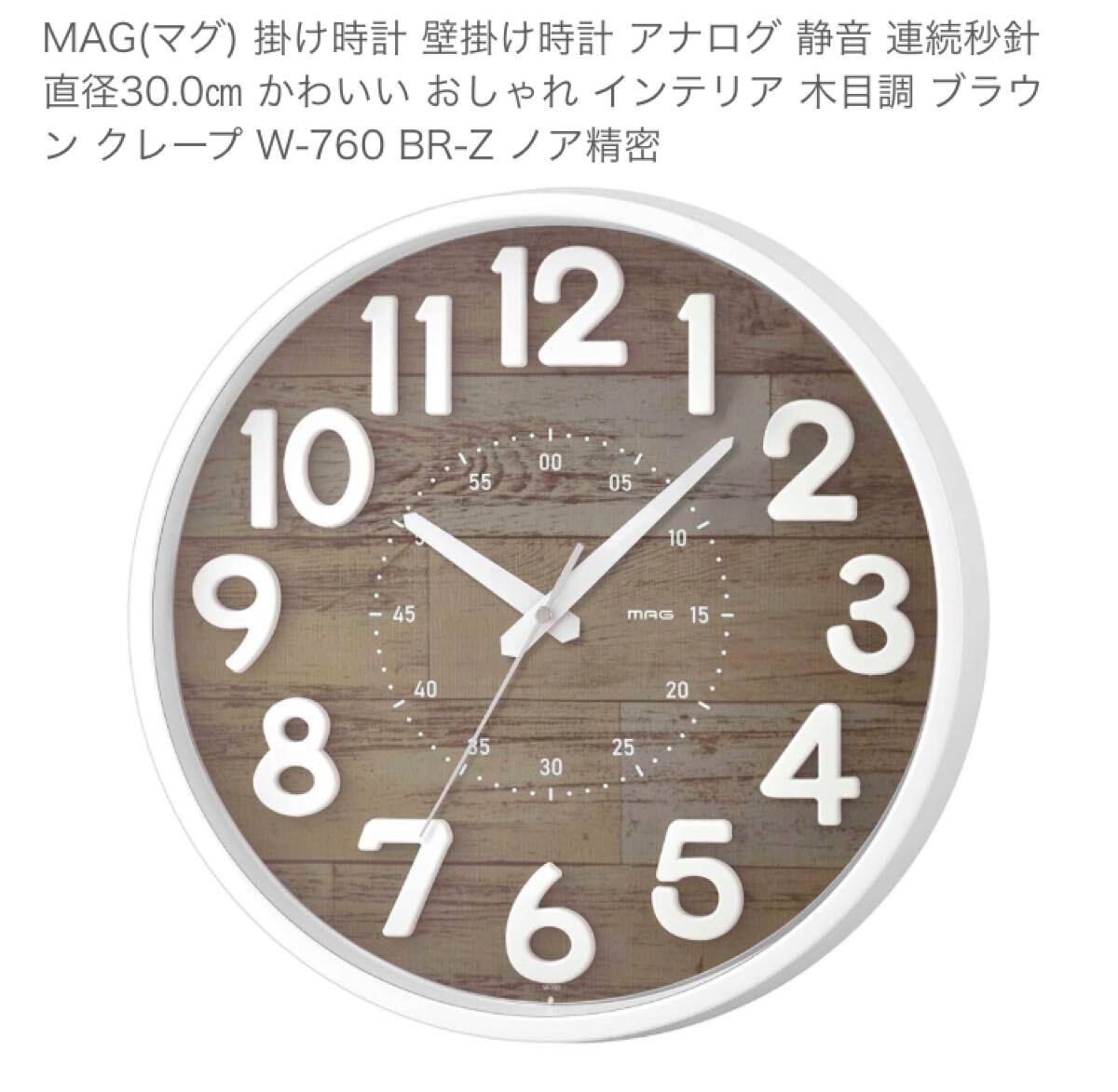 MAG(マグ) 掛け時計 壁掛け時計 アナログ 静音 連続秒針 直径30.0㎝ かわいい おしゃれ インテリア 木目調 ブラウン クレープ W-760 BR-Z ノア精密