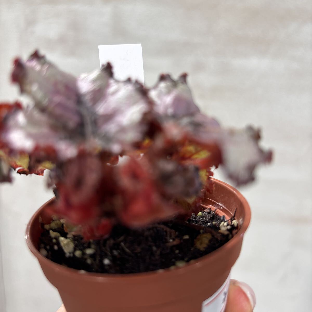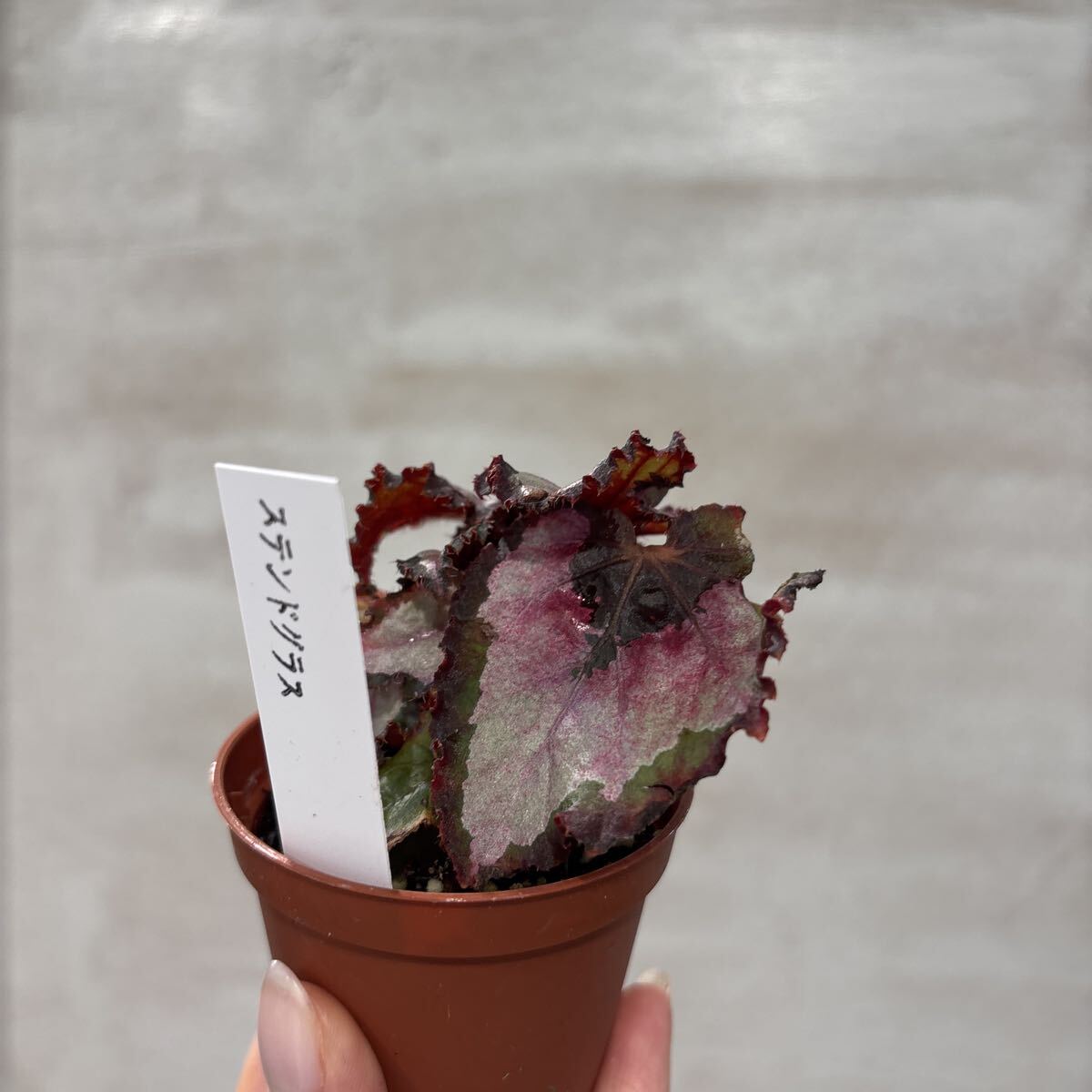 ベゴニア・ステンドグラスはシュウカイドウ科ベゴニア属のレックスベゴニアの品種。 葉色が赤と濃い赤というか黒で構成され、独特の雰囲気があります。 室内インテリアとして流通しています。