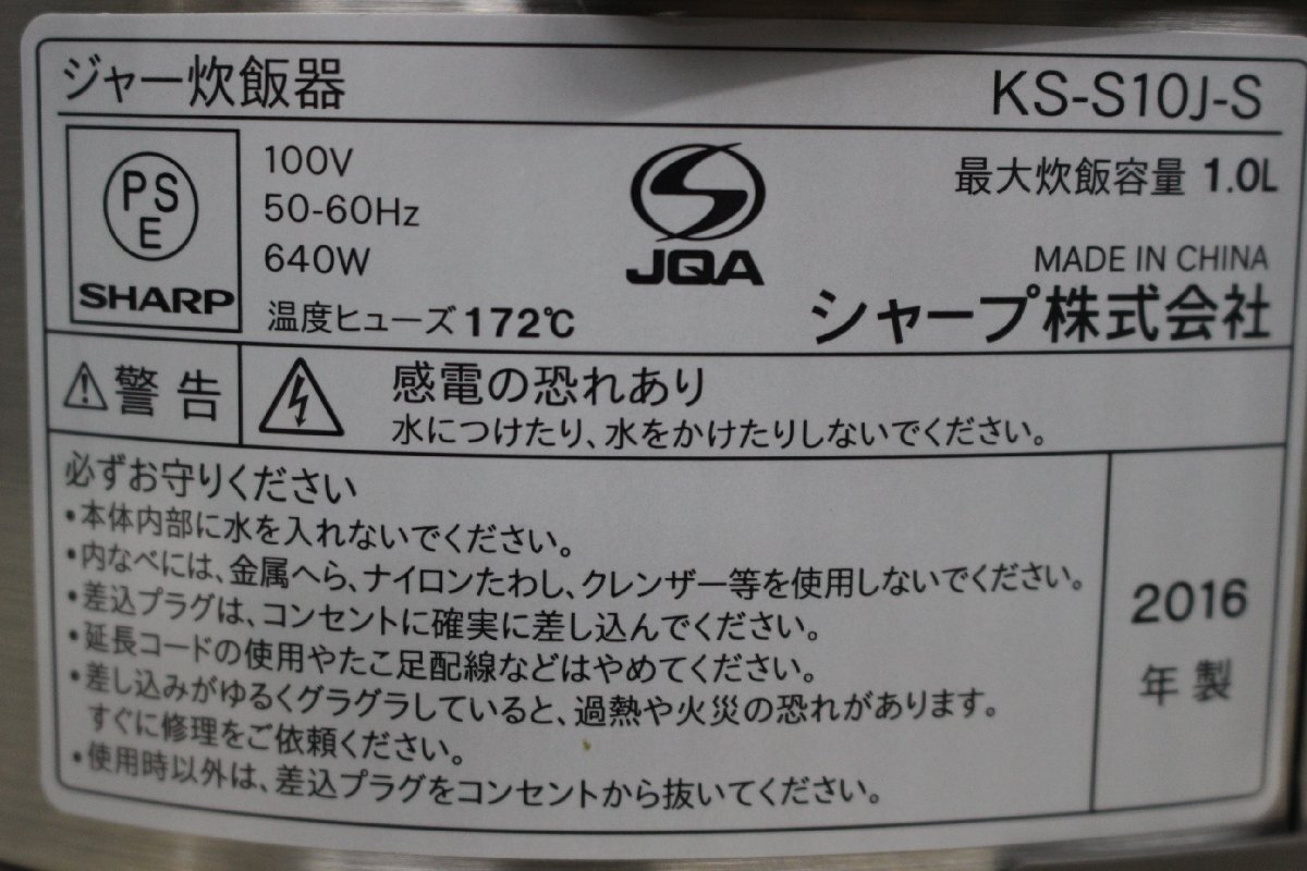 ★本州送料無料★5.5合炊飯器★SHARP★KS-S10J★2016年製★左側塗装げ。天面小さな打痕あり。★#046130