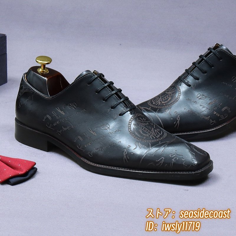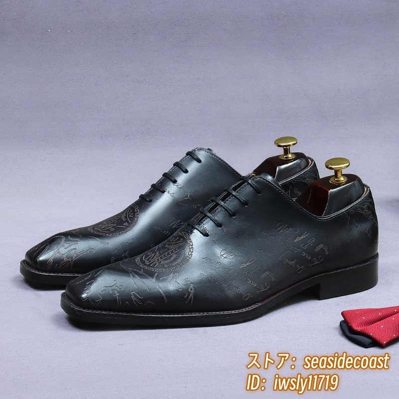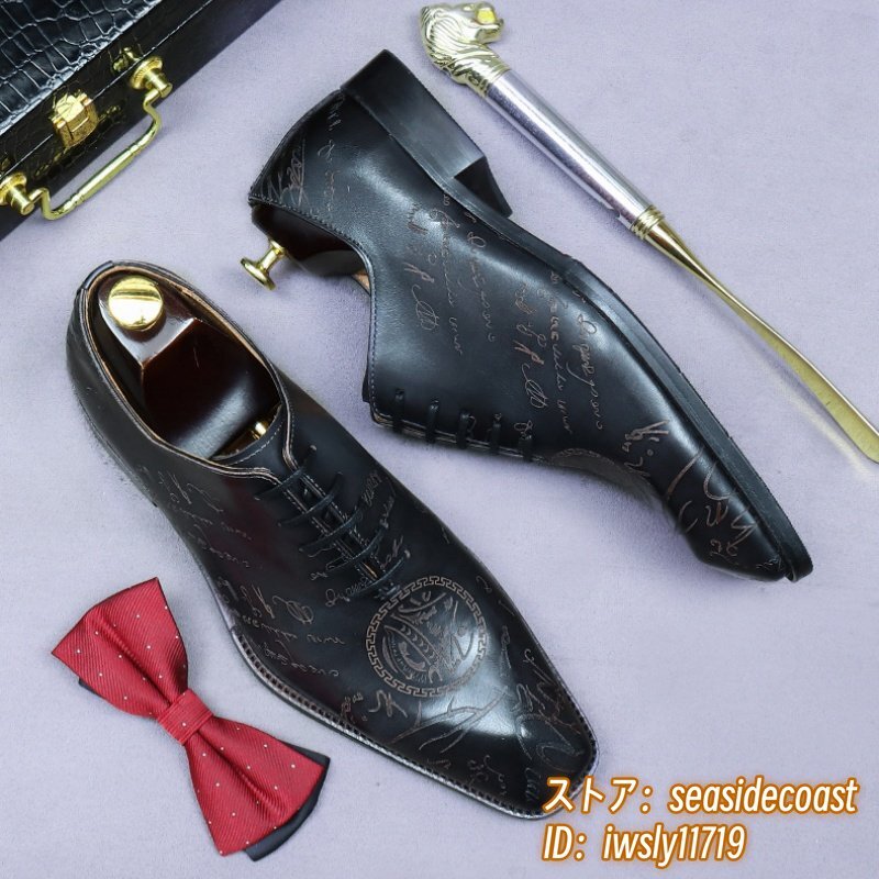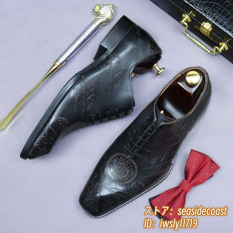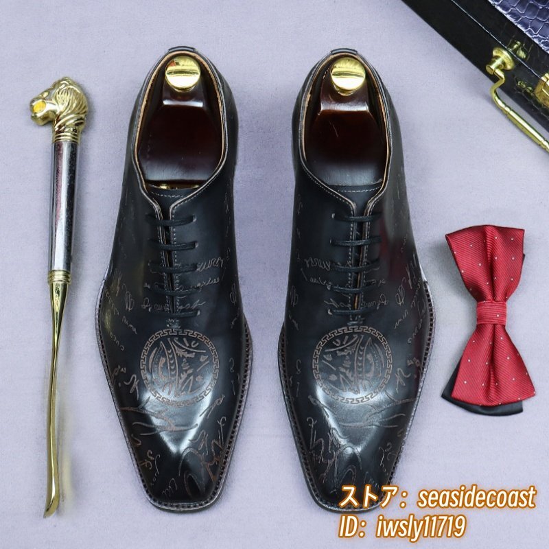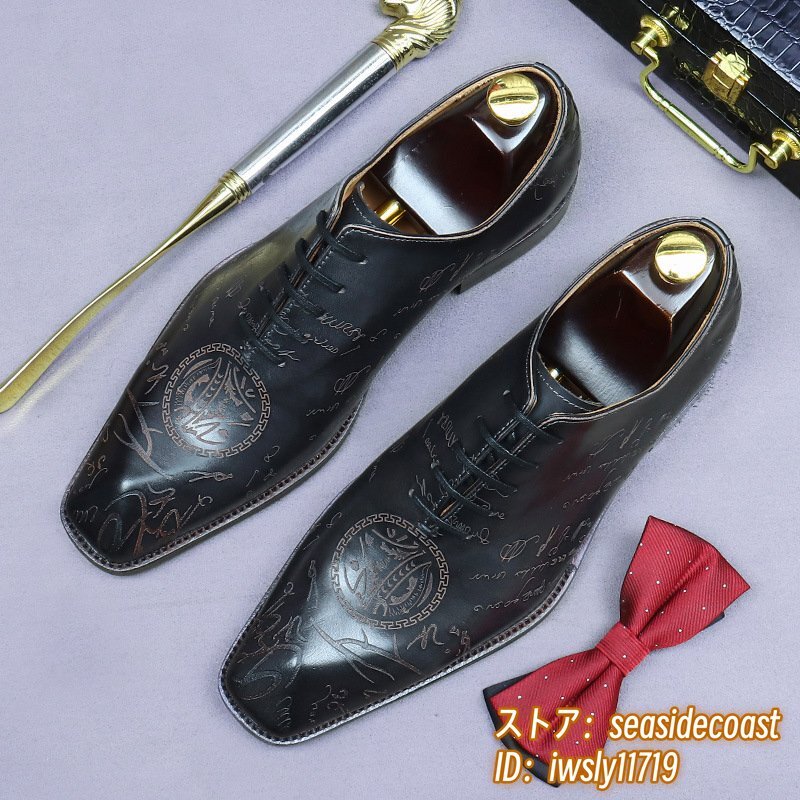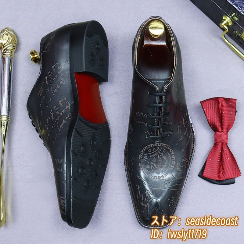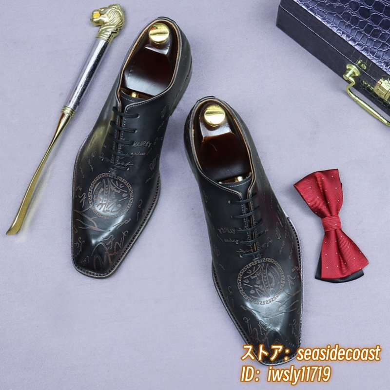 最高級◆定価11万超 ビジネスシューズ 本革 メンズ 職人手作り 彫り レザーシューズ 牛革 革靴 フォーマル 紳士靴 ドレス ブラック 28.0cm