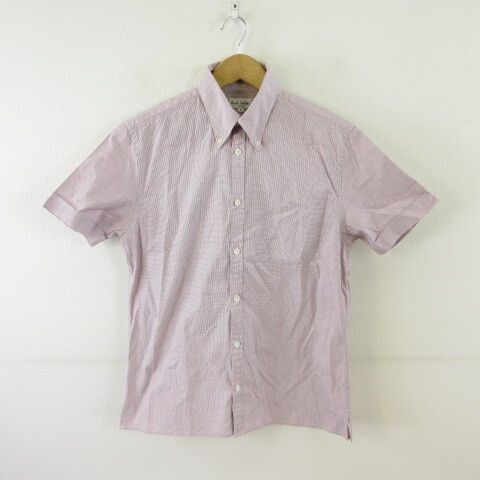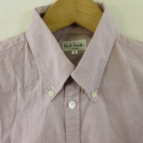 ポールスミス PAUL SMITH ボタンダウンシャツ 半袖 チェック 赤 白 紺 M *T159 メンズ