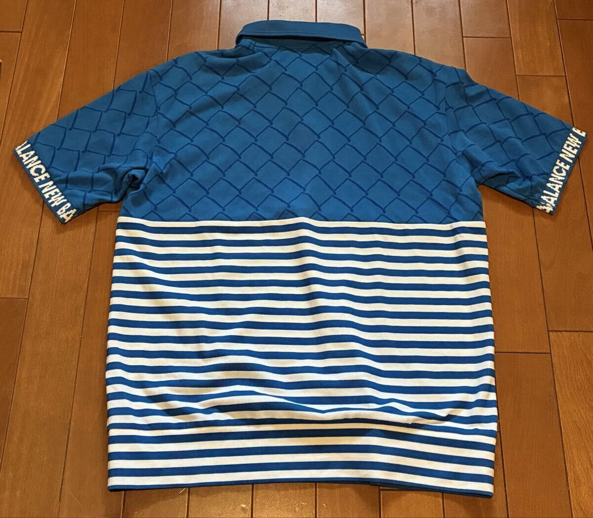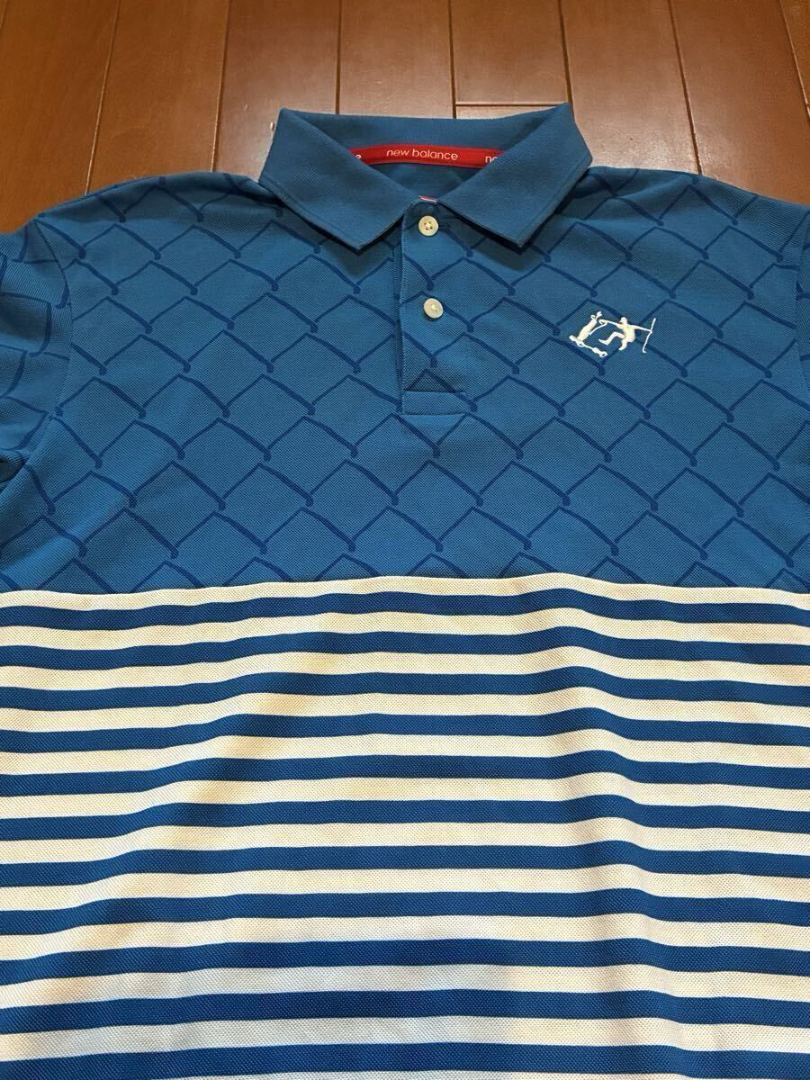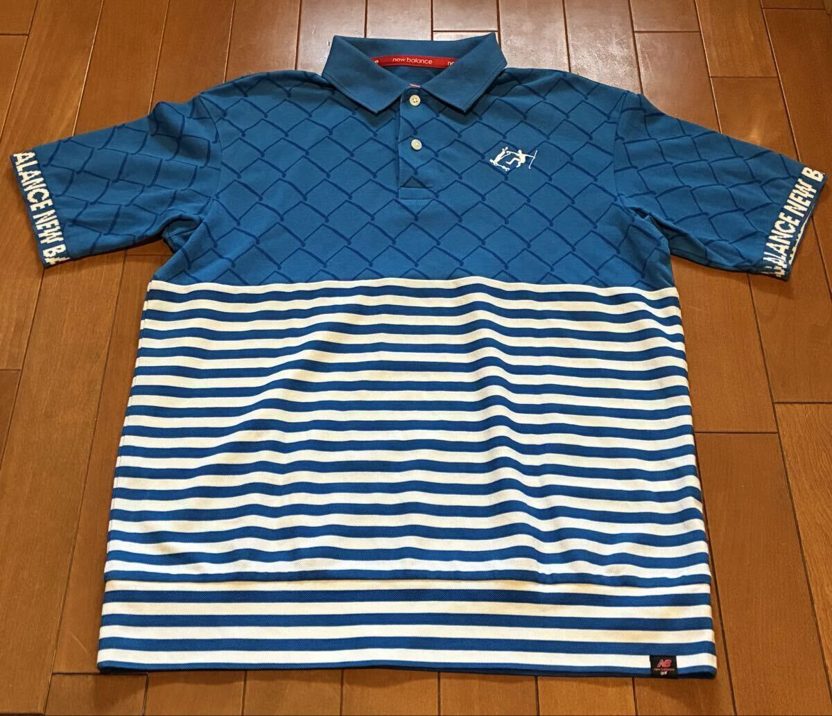 NEW BALANCE GOLF ニューバランスゴルフ 半袖ポロシャツ ブルーストライプ柄 サイズ 4 吸汗速乾素材