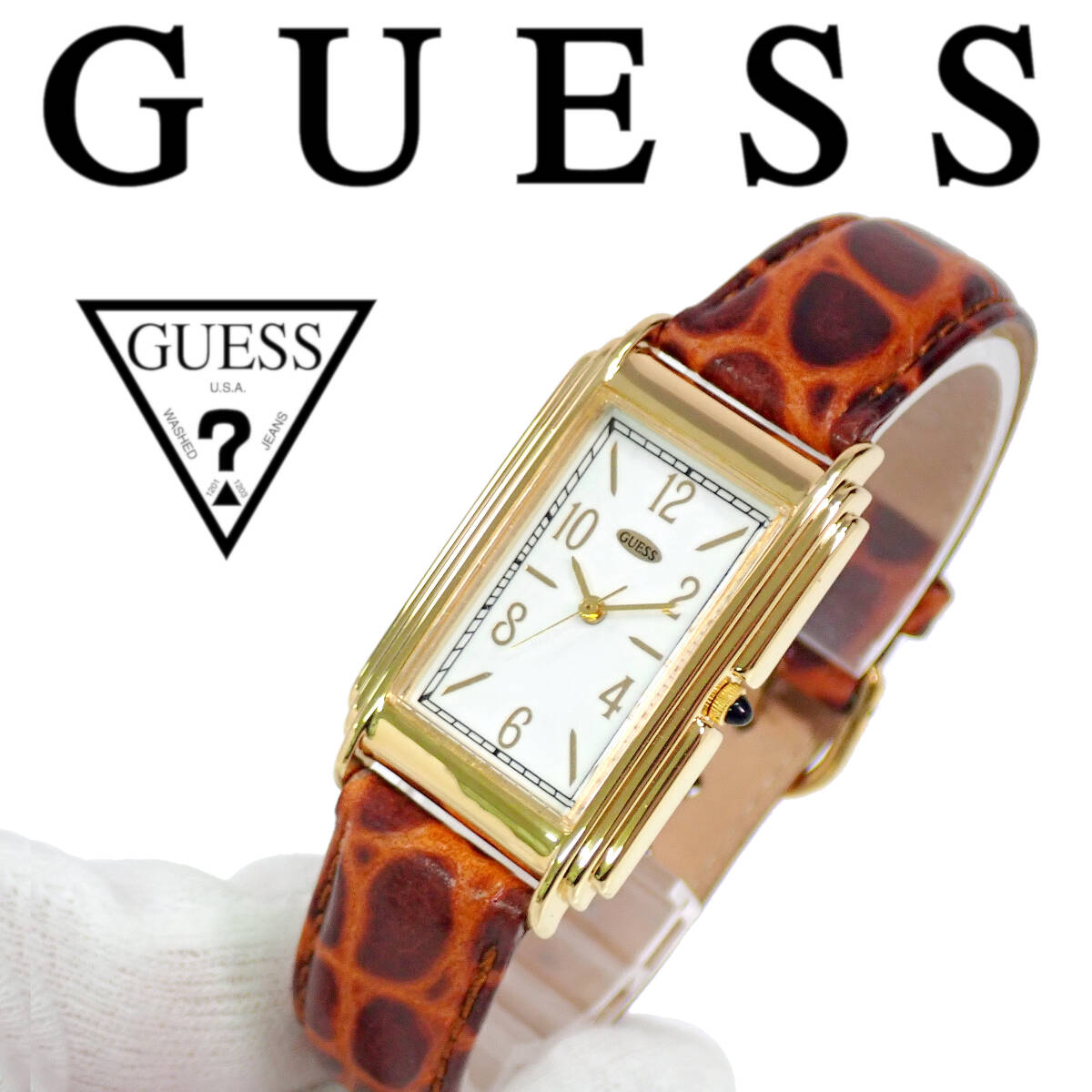 GUESS スクエア ゴールド/ホワイト文字盤 点検動作品 ゲス