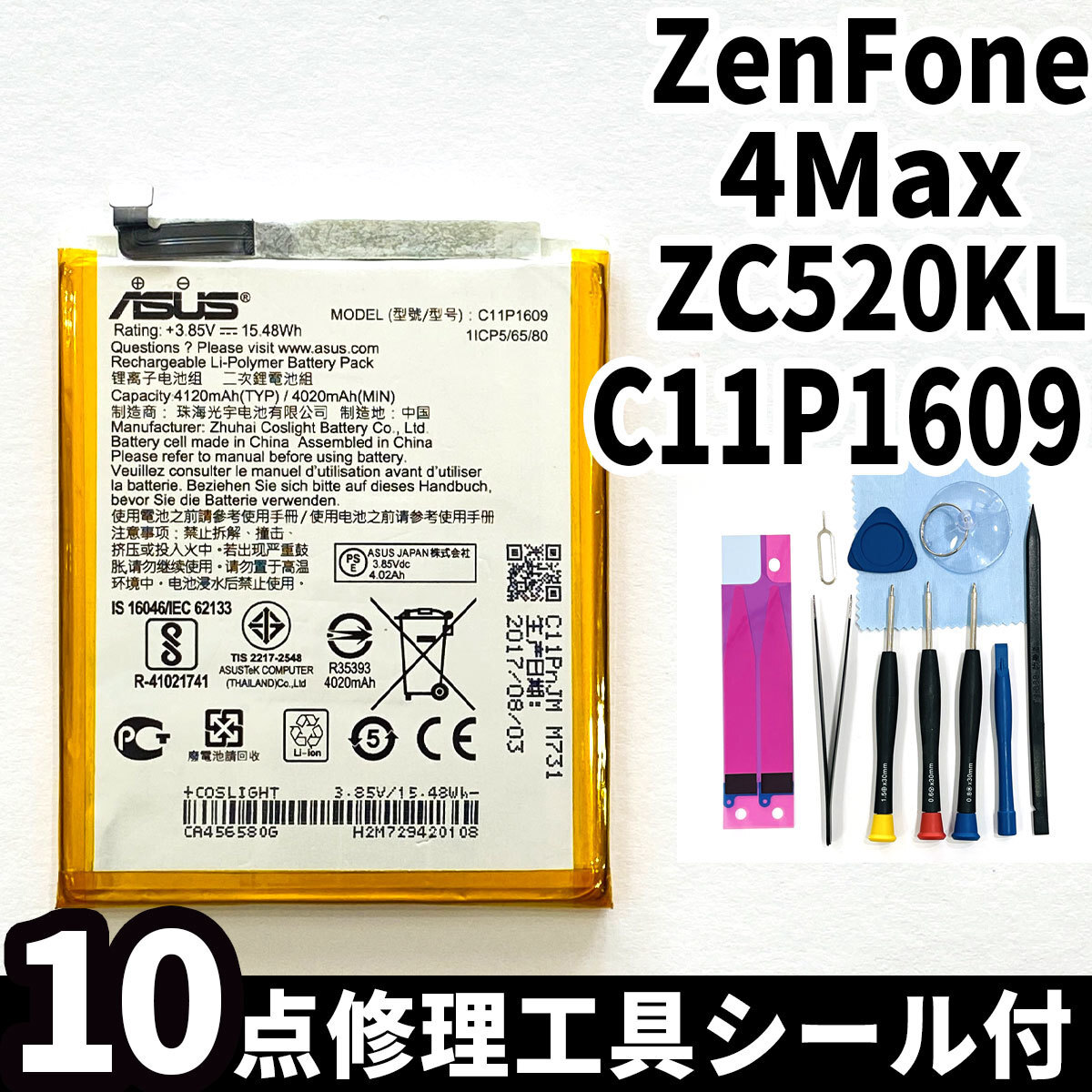 ★ASUS ZenFone 4 Max バッテリー交換 ZC520KL C11P1609 電池パック交換キット battery repair 電池交換専用両面テープ 修理工具付セット★