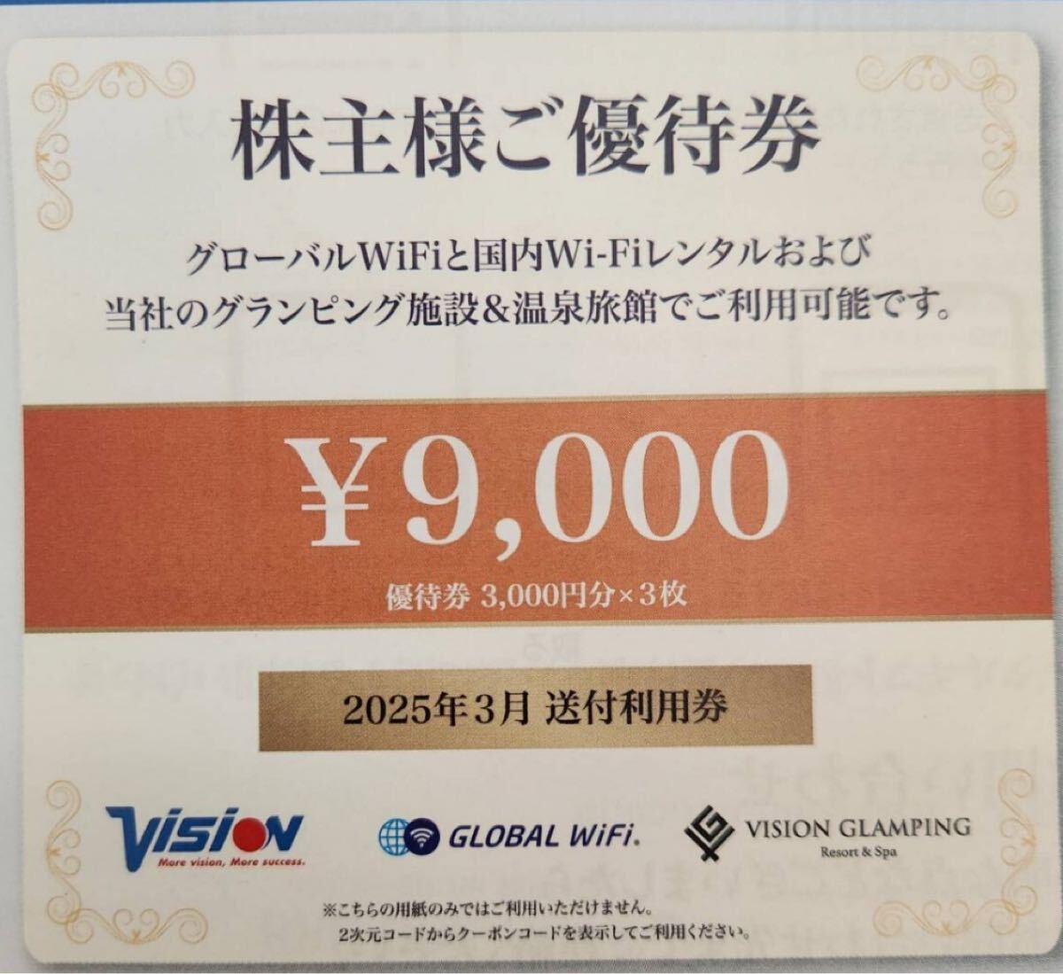 ビジョン 株主優待 9000円分(3000円分×3枚)