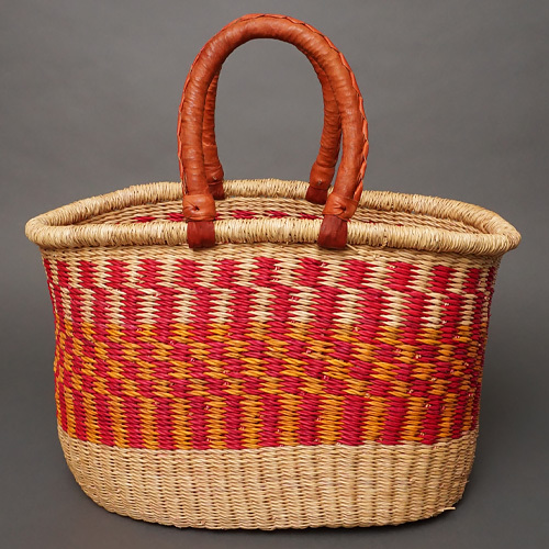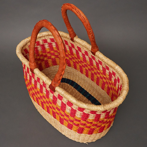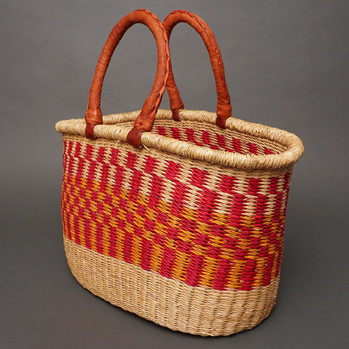 アフリカ ブルキナファソ  楕円 マルシェ バスケット カラー Lサイズ  No.4 かご かごバッグ アフリカ雑貨