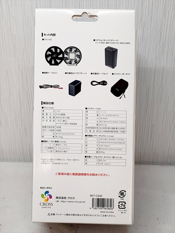 | 名 称 | クロス CROSS 空調服用ファンユニット Cross-fanEX40 SKT-CS40 |