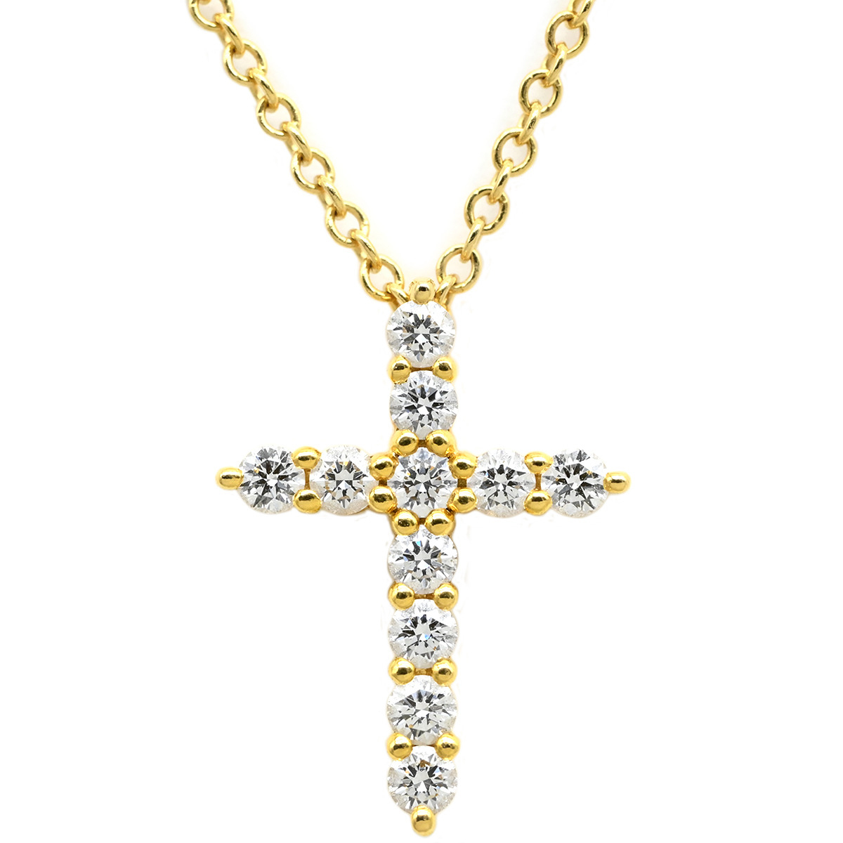 | ティファニー Tiffany & Co ネックレス K18YG ダイヤモンド イエローゴールドT&Co. Au750 18K 18金 11P 11石 十字架 スモールクロス ロザリオ - レディース 【箱】定番 人気 美品 中古 | |