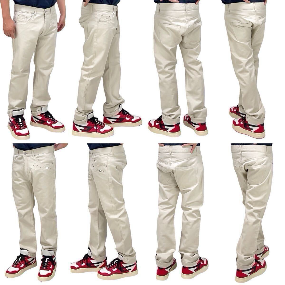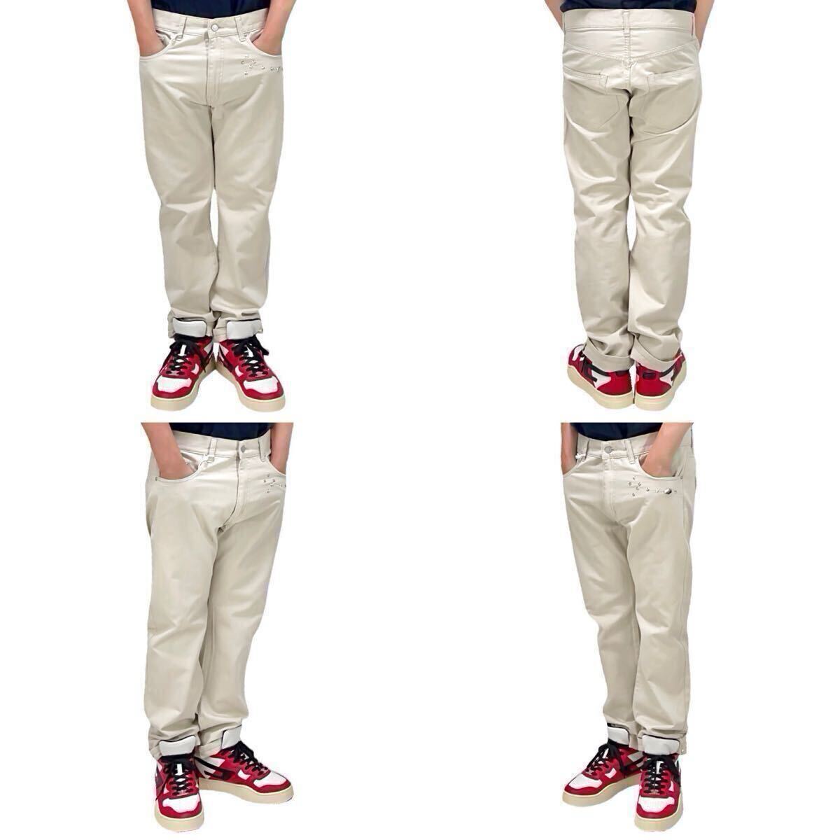 腰穿き仕様で少し大きめのウエスト幅と深すぎず浅すぎずの股上、ベーシックなストレートシルエット、そして長過ぎないレングスは裾上げなしのジャストサイズ、また身長のある方にはロールアップでくるぶし丈で穿くのもおしゃれでおすすめです。