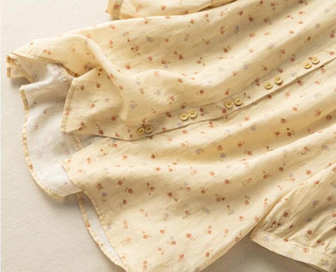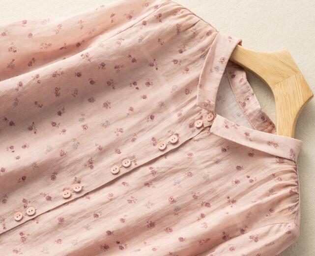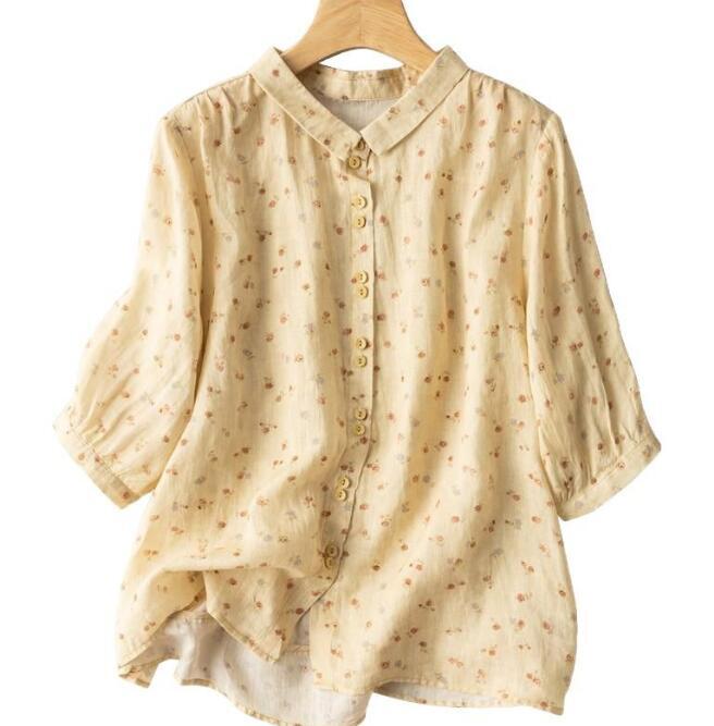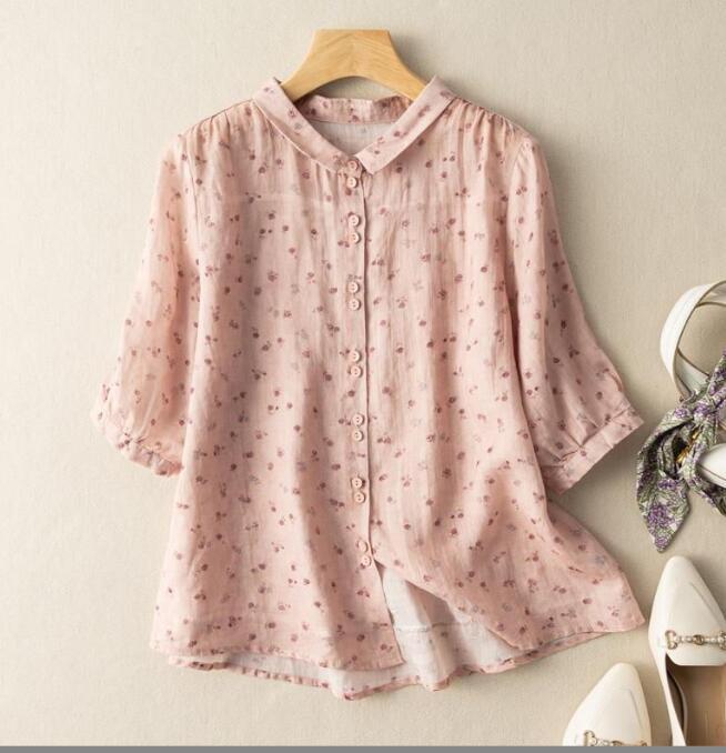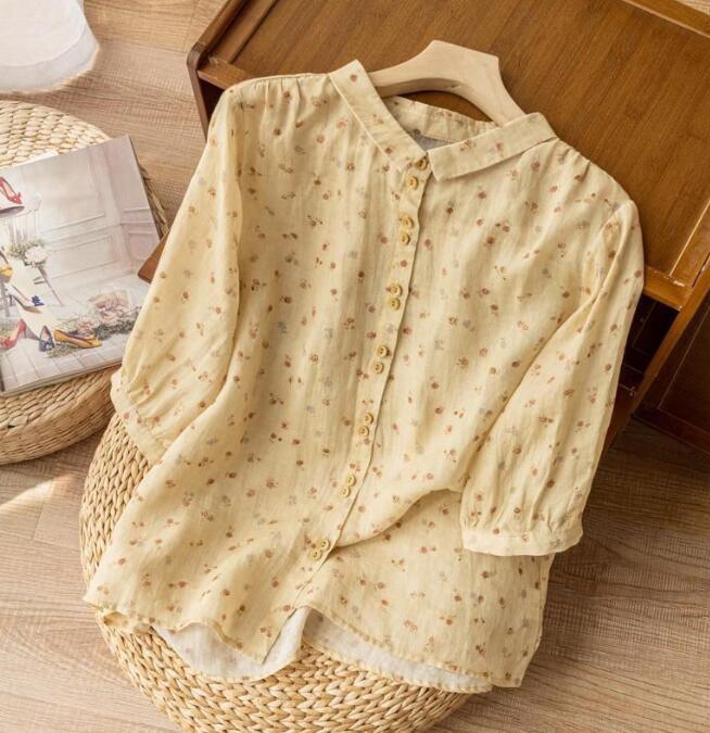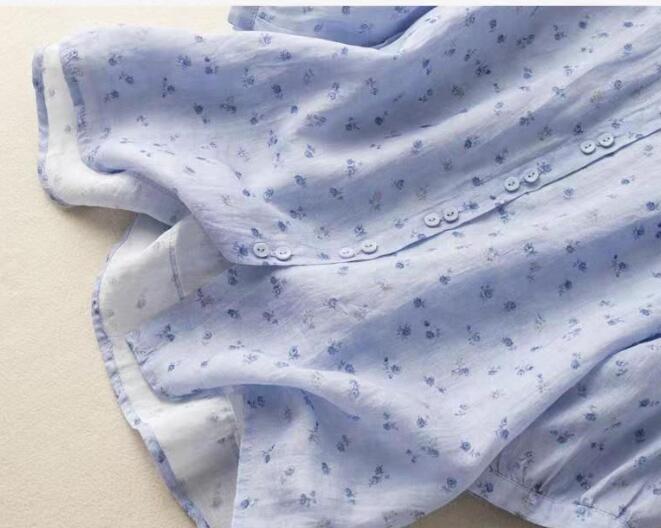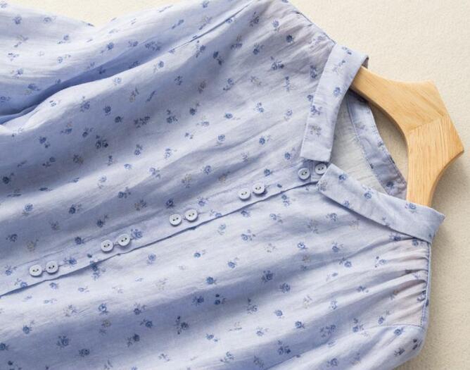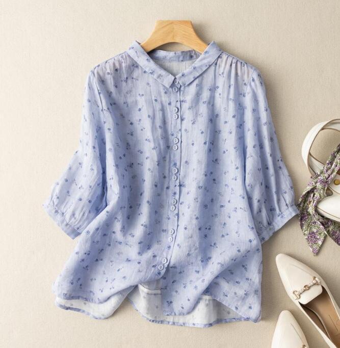 人気新品綿麻 シャツ レディース ブラウス チュニック ブラウス 七分袖 リネン シャツ ナチュラル 着痩せ ゆったり 可愛い ブルー