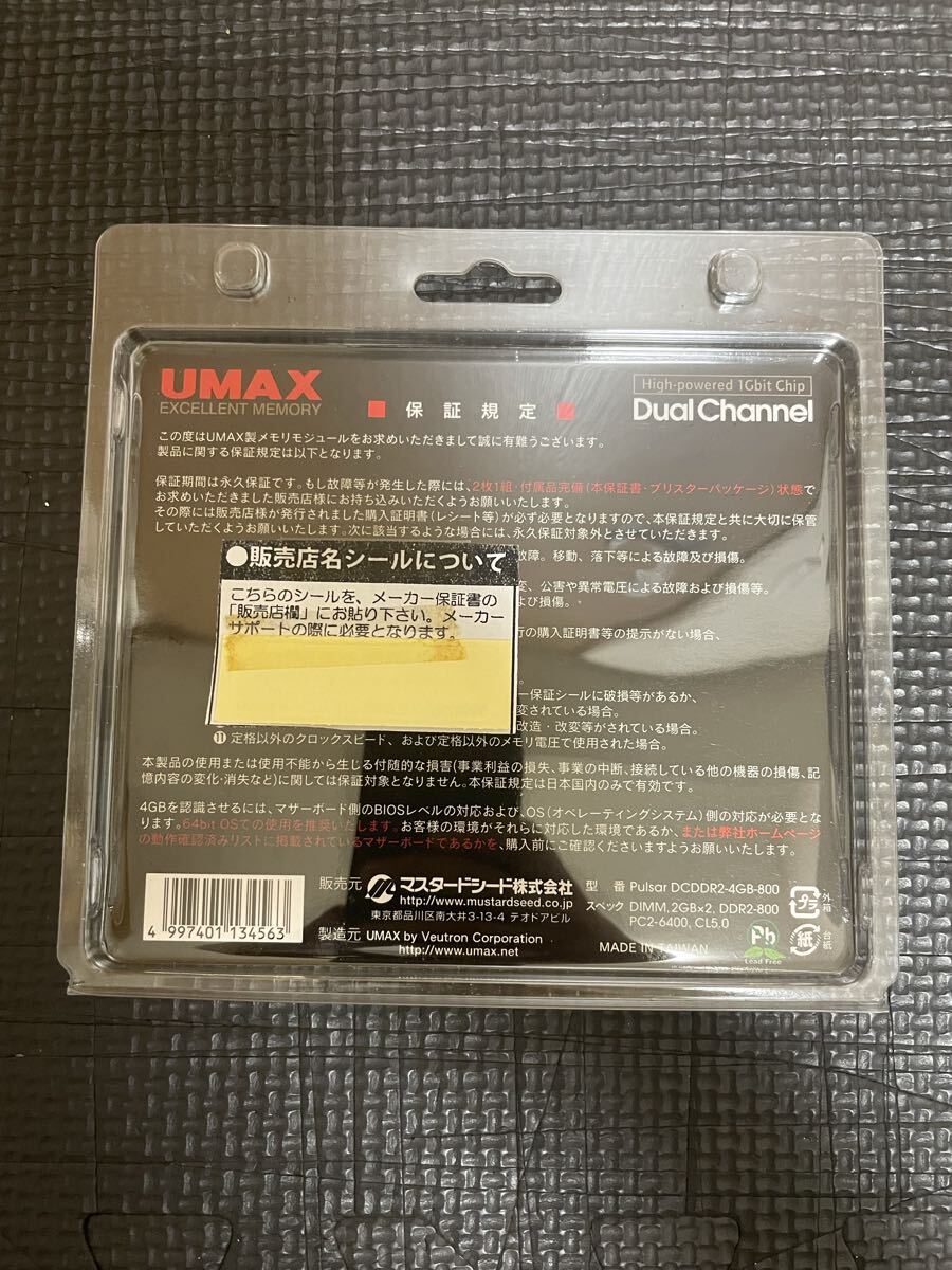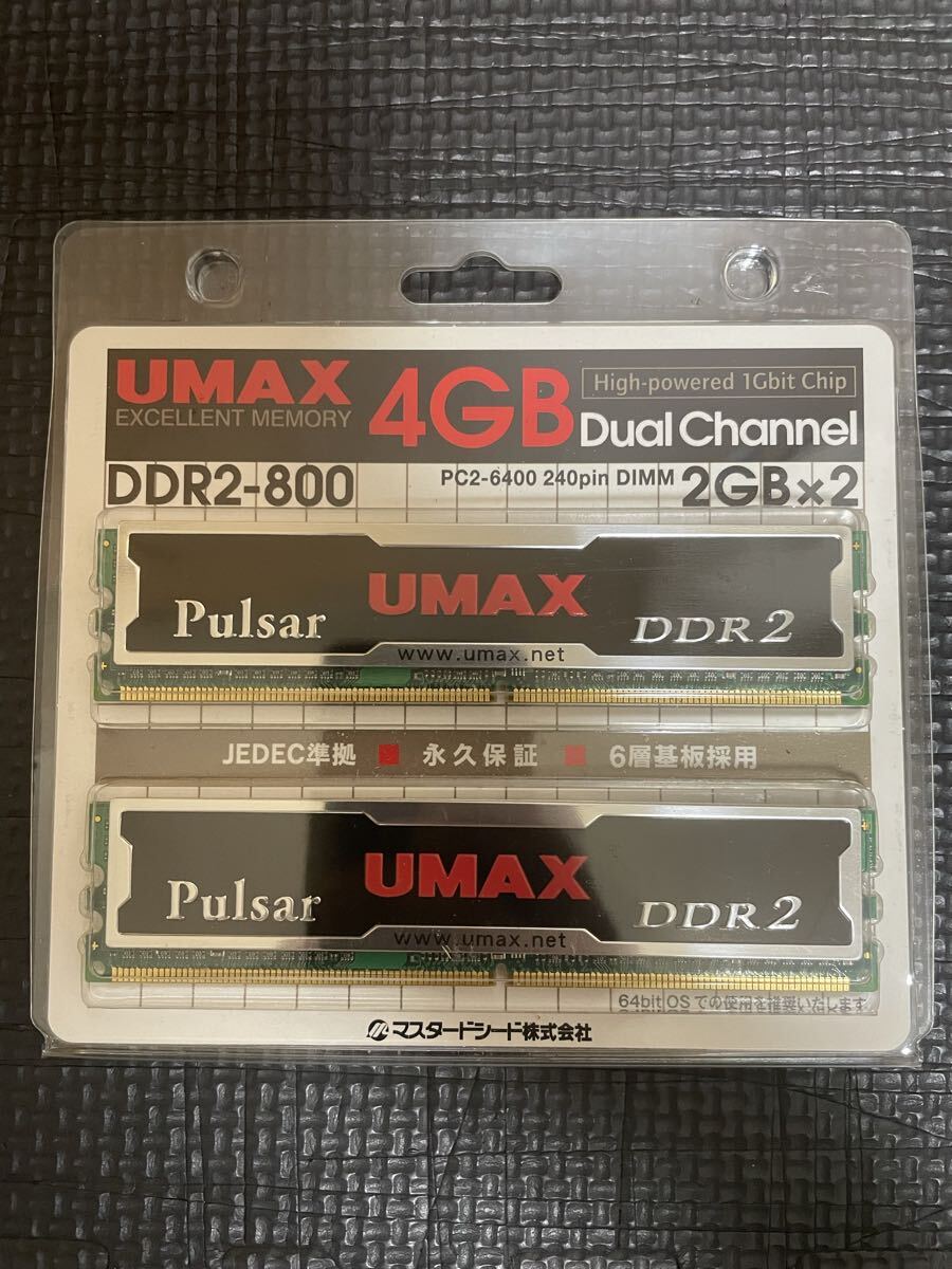 UMAX 4GB Dual Channel DDR2-800 PC2-6400 240pin DIMM 2GB×2 未使用品