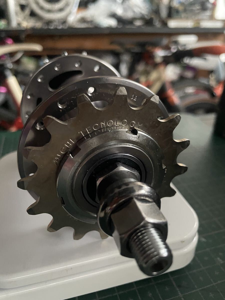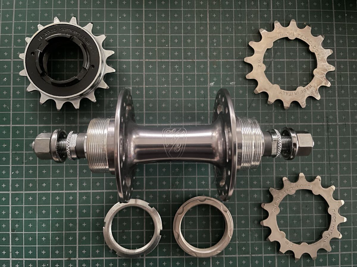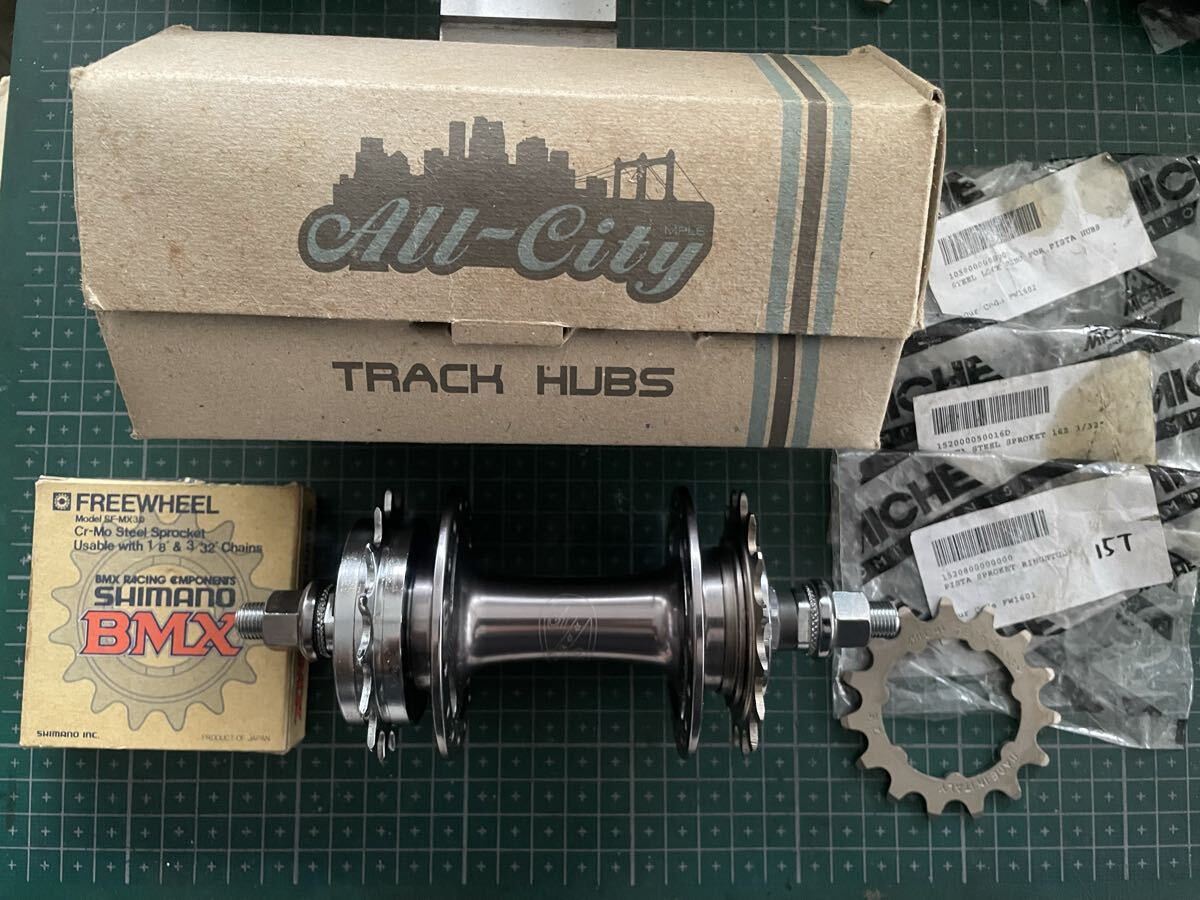 新品未使用 All City Track Rear Hub Pewter 130mmOLD 32H Fixed/Free + Shimano SF-MX30(16T) Free + Miche 15T 16T PISTA Fixed Hardware