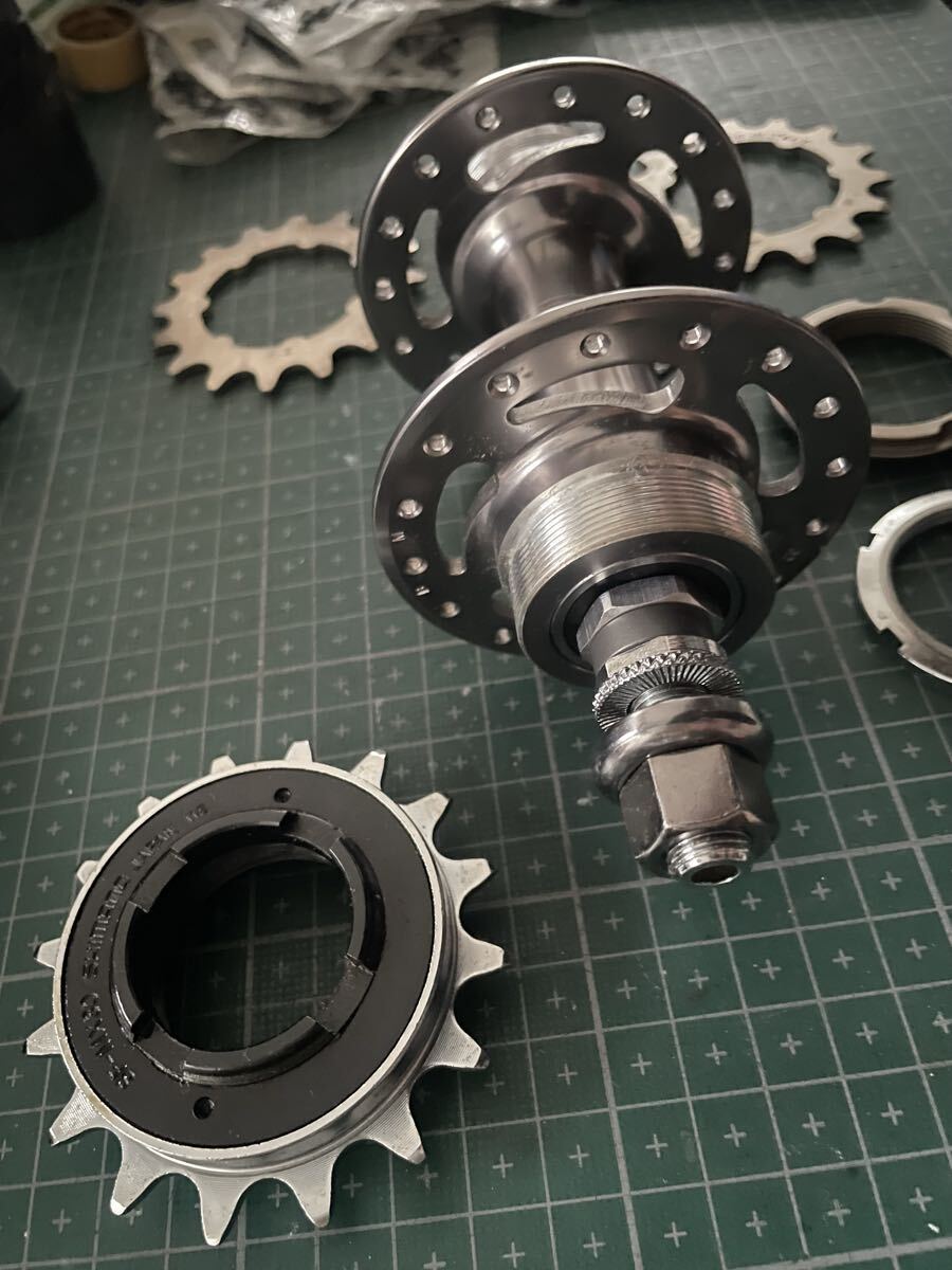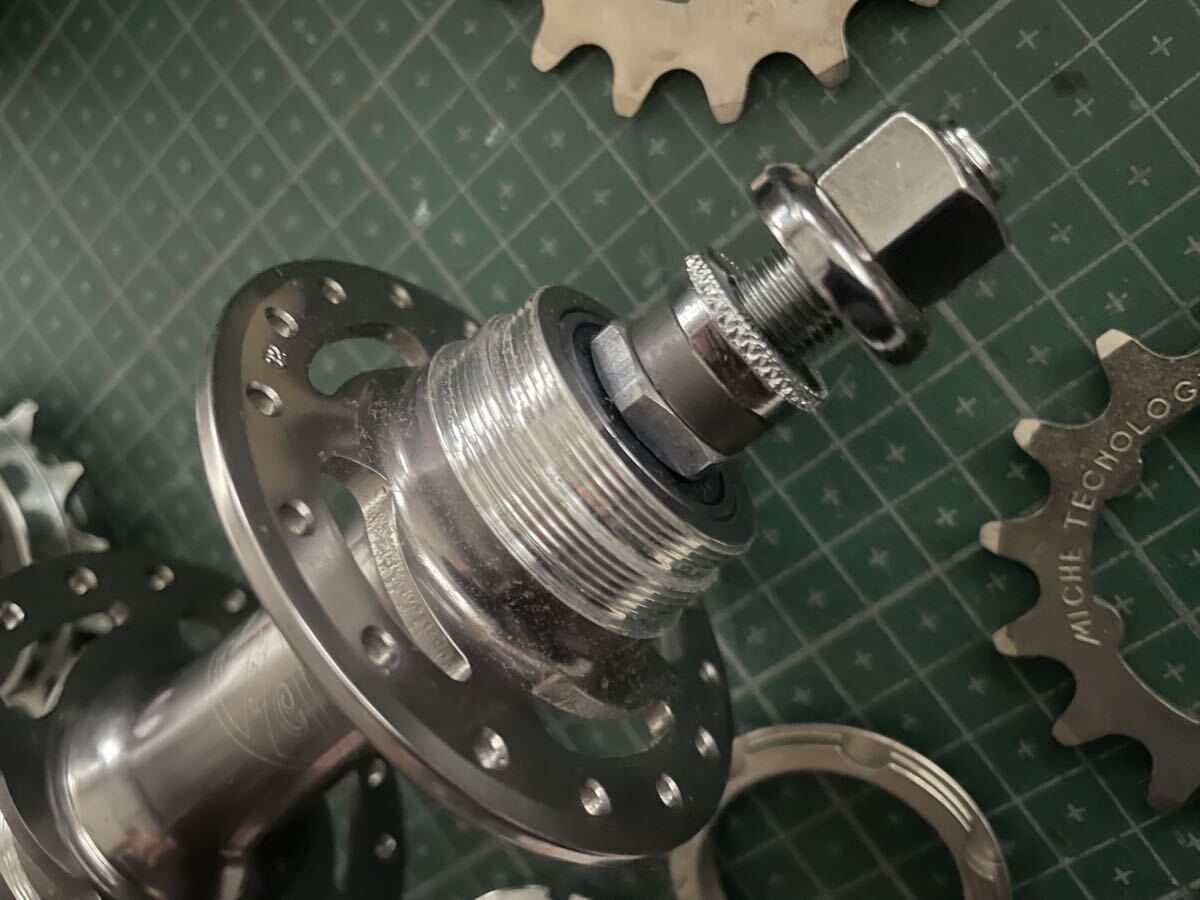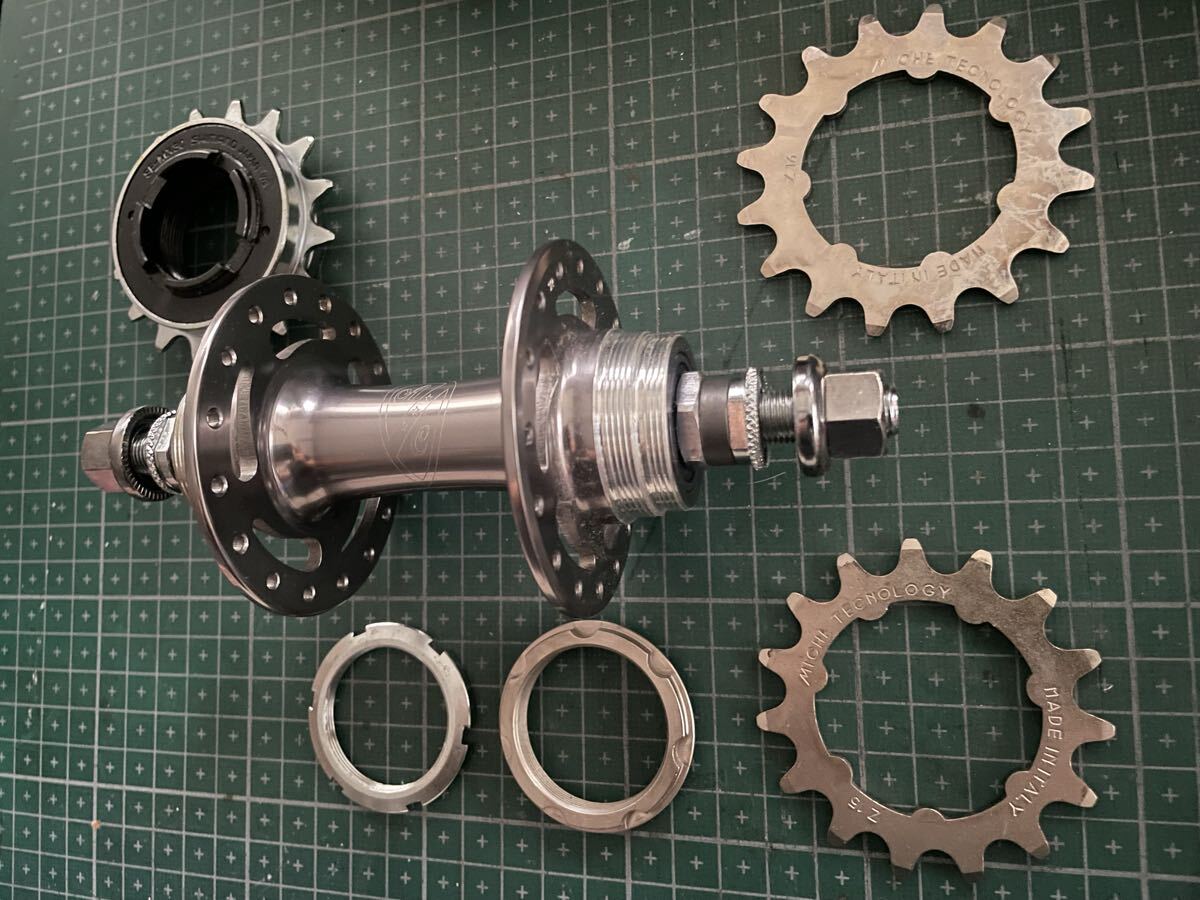 新品未使用 All City Track Rear Hub Pewter 130mmOLD 32H Fixed/Free + Shimano SF-MX30(16T) Free + Miche 15T 16T PISTA Fixed Hardware
