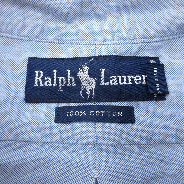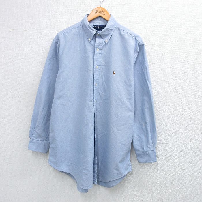 【商品名】 XL★古着 ラルフローレン 長袖 ブランド シャツ メンズ 90年代 90s ワンポイントロゴ オックスフォード 大きいサイズ ロング丈 コットン ボタンダウン 薄紺