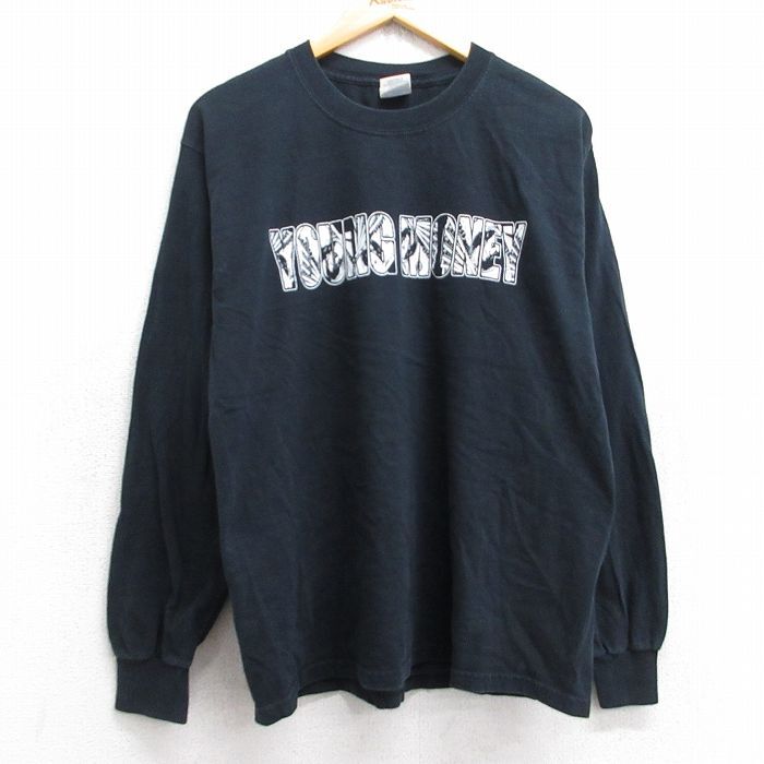 【商品名】 L★古着 長袖 ビンテージ Tシャツ メンズ 00年代 00s YOUNG MONEY コットン クルーネック 黒