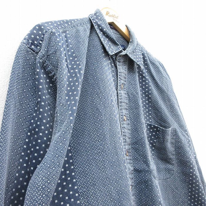 【商品名】 XL★古着 バンヒューセン 長袖 シャツ メンズ 90年代 90s 総柄 大きいサイズ コットン 紺系他