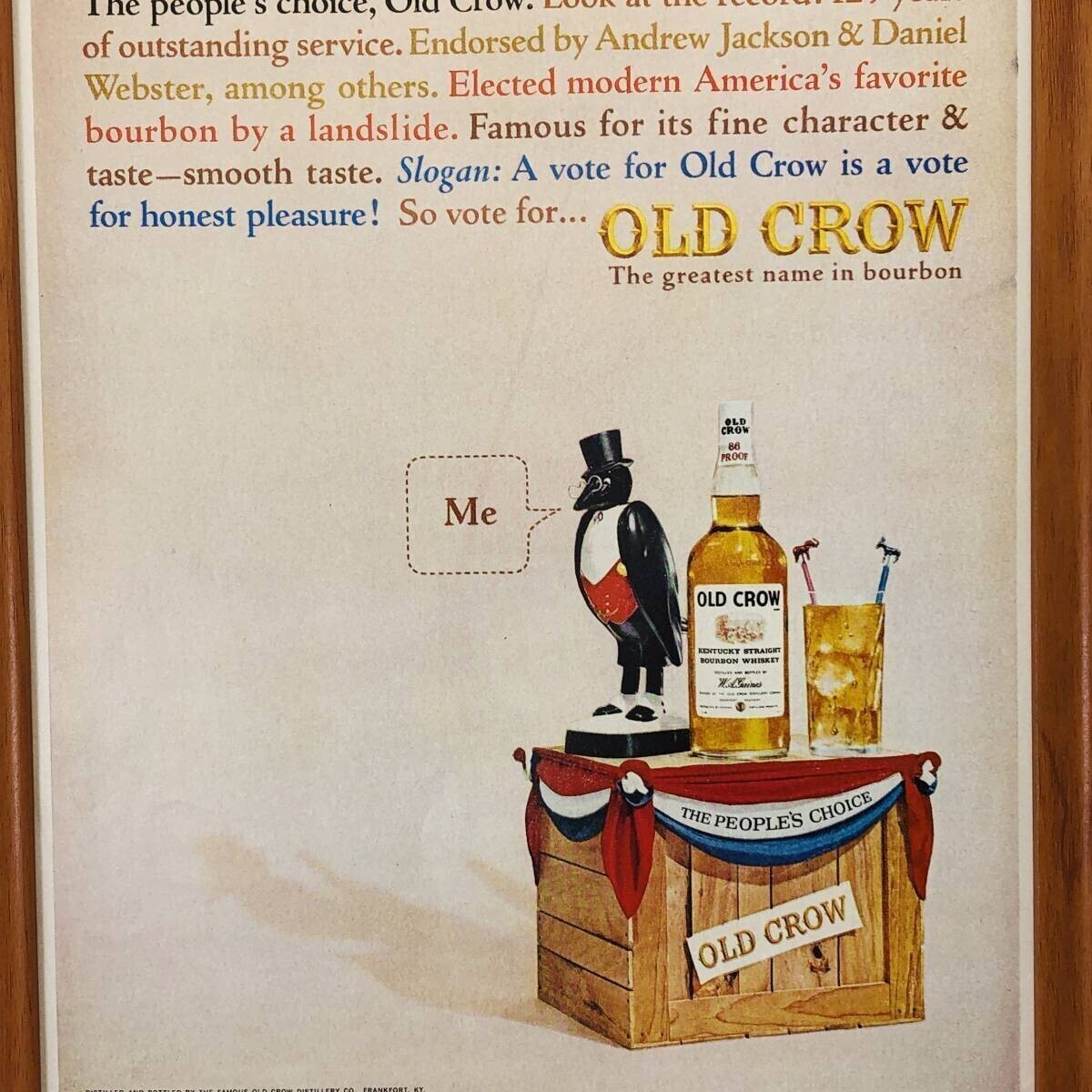 1960年代当時のアメリカの雑誌 LIFEに掲載されていた『 オールドクロウ バーボン OLD CROW 』の広告を額装いたしました。