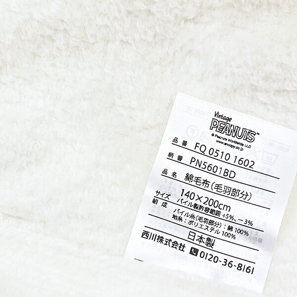 商品名 | スヌーピー 綿毛布(ホワイト) 寝具 日本製 西川 SNOOPY |