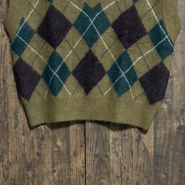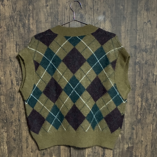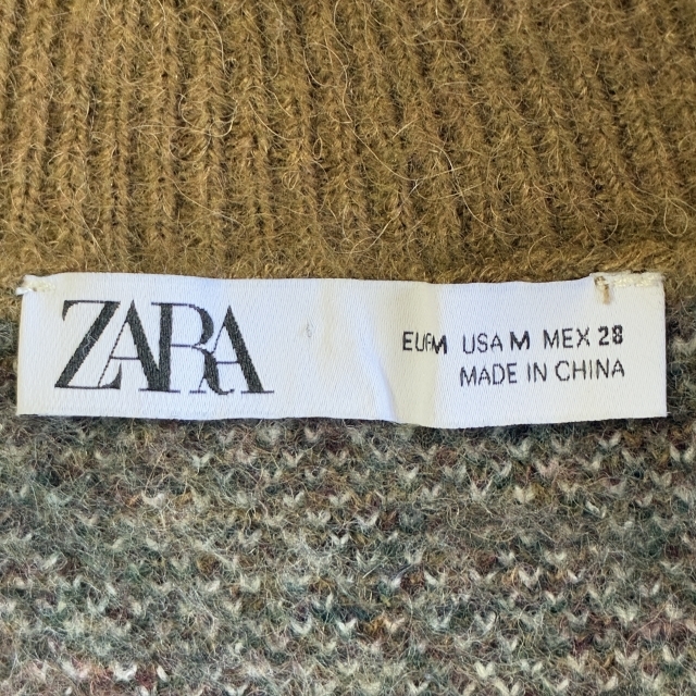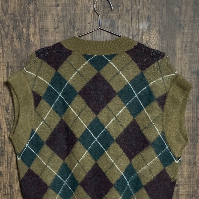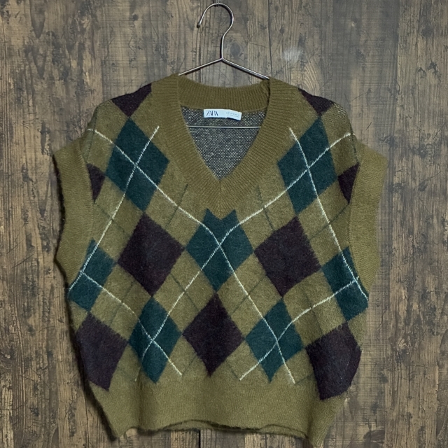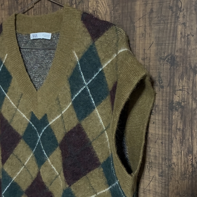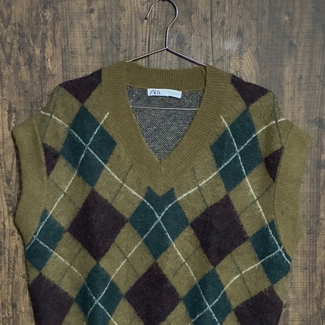C17◇ZARA | ザラ アーガイル柄 ニットベスト カーキ×ダークグリーン×ダークネイビー×ホワイト メンズ M(USA)サイズ 中古品