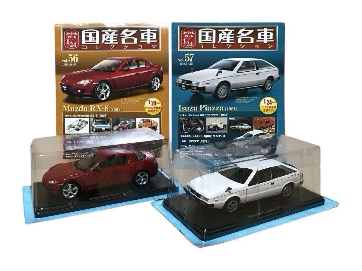 ミニカーコレクションの整理のため「国産名車コレクション Vol.56 Mazda RX-8 2003 & Vol.57 Isuzu Piazza 1981 定期購読2号セット」を出品致します。