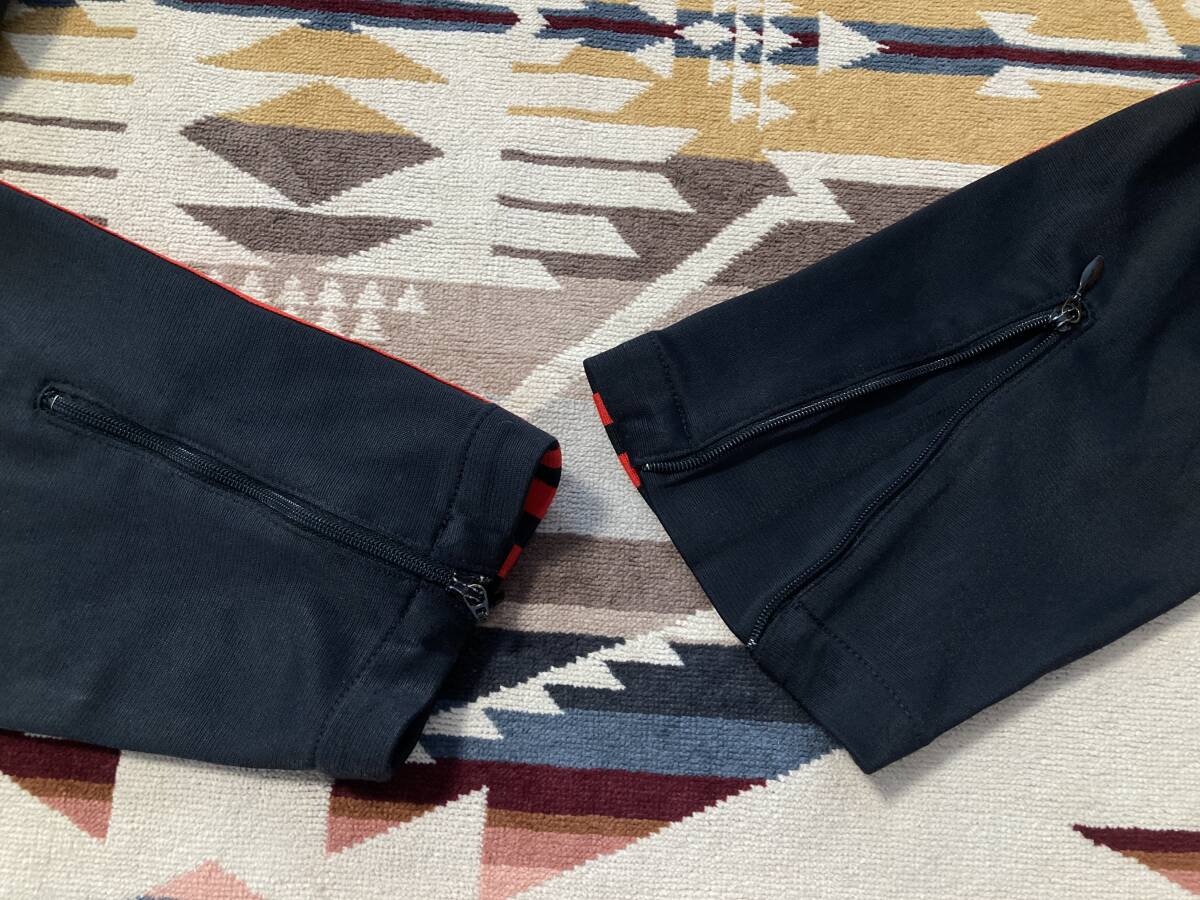 商品名:adidas 曲がりポケット ジャージ サイズ:表記USA M/J O 平置き肩幅(計測不可) 身幅(脇下~脇下)56cm 着丈(襟付け根~裾)68cm 裄丈89cm ※素人採寸の為多少の誤差はご了承下さい。 カラー:ブラック、レッド 状態:ナイロン78%ポリエステル22%。YKKZIP。ZIPポケット×2。袖先ZIP。幾分かの使用感、小傷等ありますが一般古着程度だと思います。 発送方法:レターパックプラス(配達記録付600円) ※USED古着になりますので神経質な方、御理解の無い方の御入札はお控え下さい。送料、振込手数料は落札者様の御負担となります。ノークレーム、ノーリターンでよろしくお願い致します。
