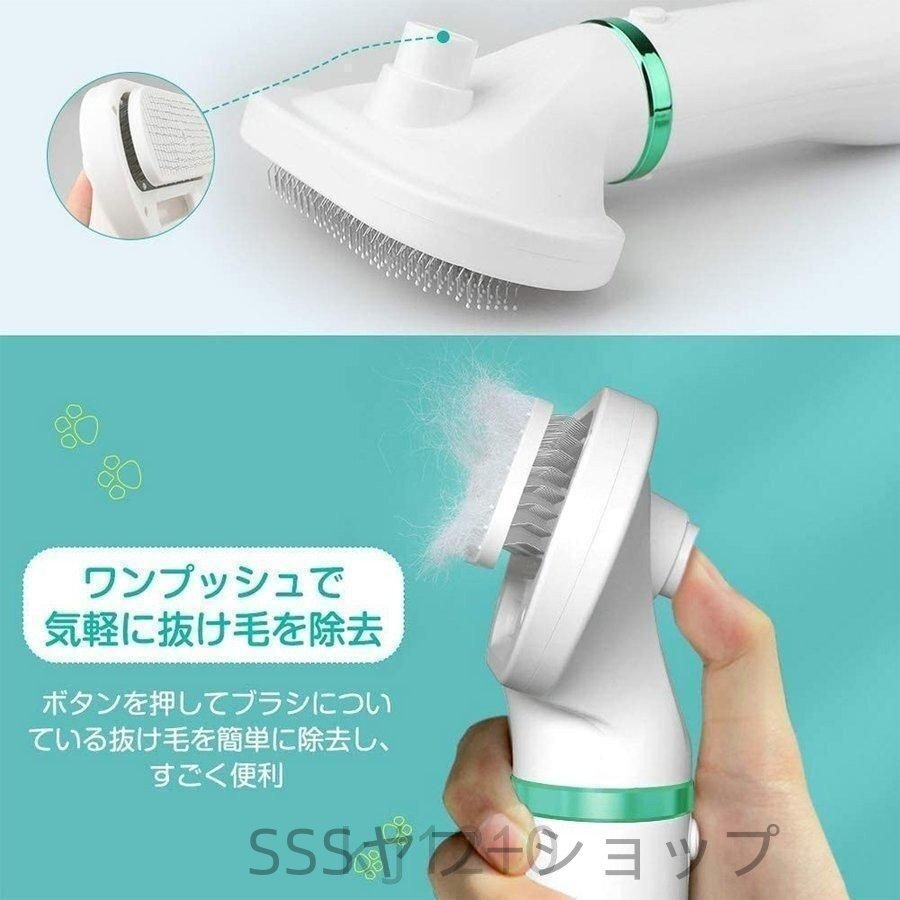 新改良版・ワンプッシュで抜け毛除去の犬用ドライヤー:飼い主さんはペットの抜け毛取りの面倒を考えて・弊社はワンプッシュのトリミングヘアドライヤーを開発しました。この犬猫専用のどらいやーは2in1の設計だけではなく・ペットに抜け毛取りの後・ドライヤーのヘッドボタンを押してブラシ上のすべての抜け毛は自動で抜けます。これは飼い主さんにとって普通の犬くし・ブラシの他・ペットヘア乾燥用のドライヤー・さらに自動で抜け毛取り可能のワンプッシュのペットバスグッズです。抜け毛ができ・毛の乾燥ができ・また抜け毛取りも簡単便利です。