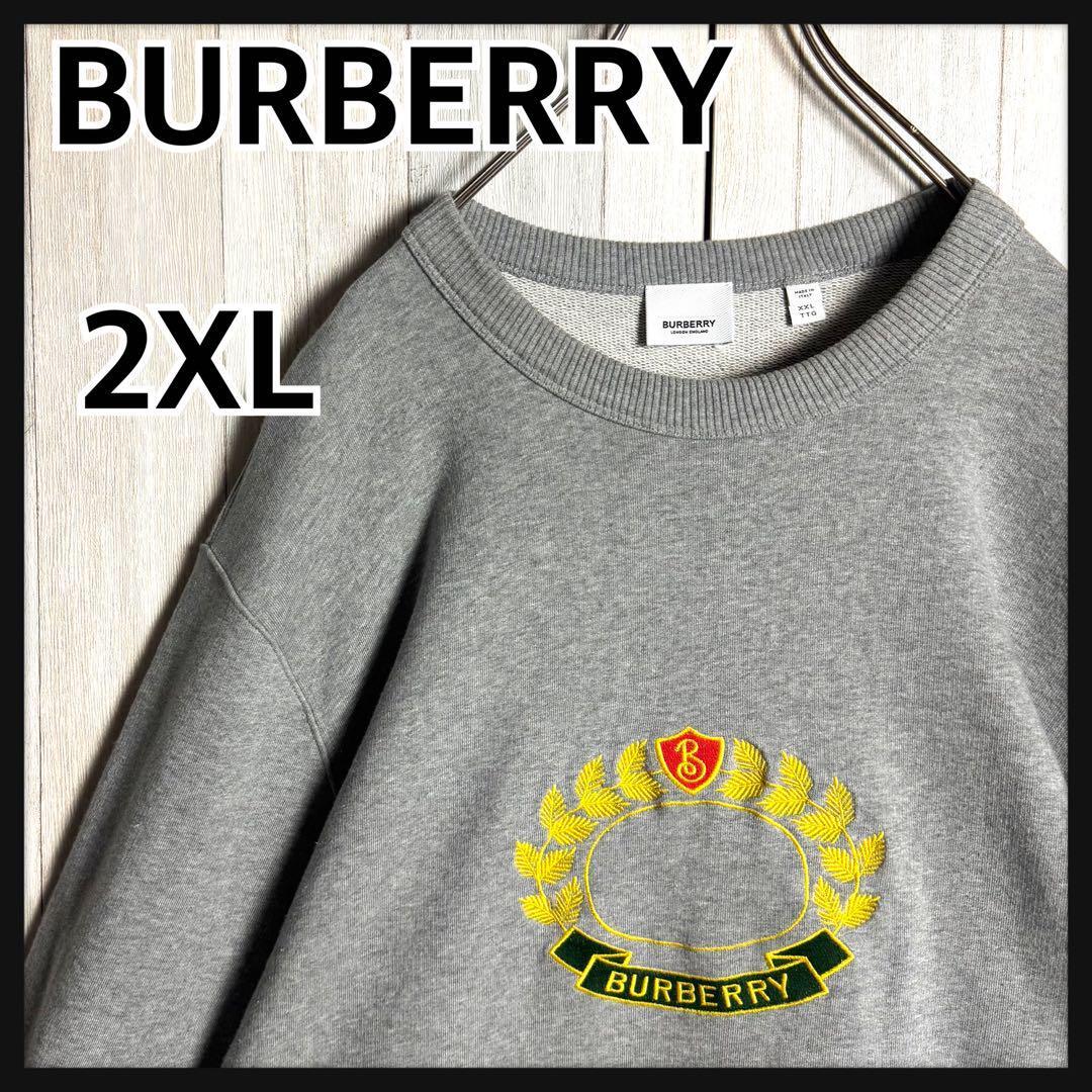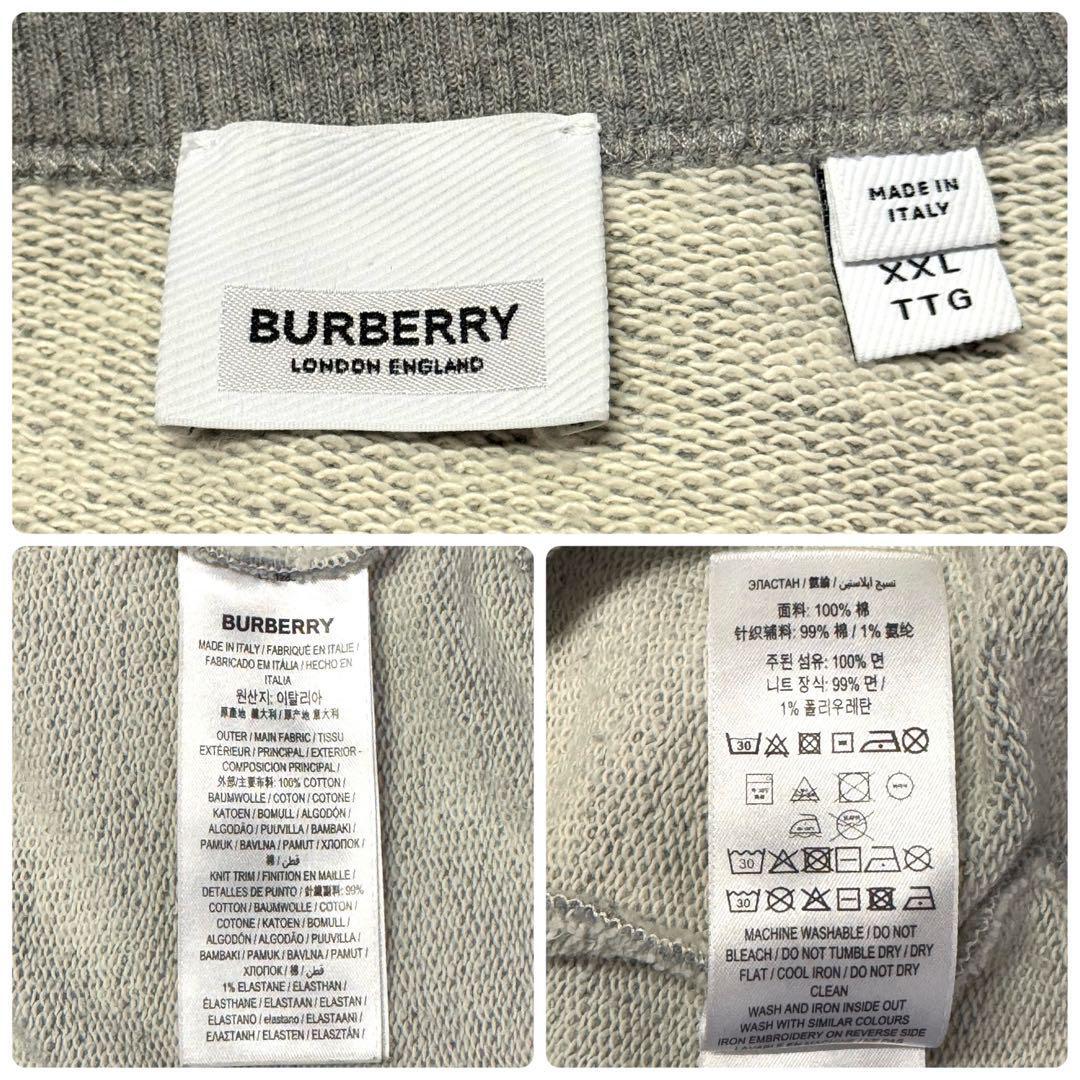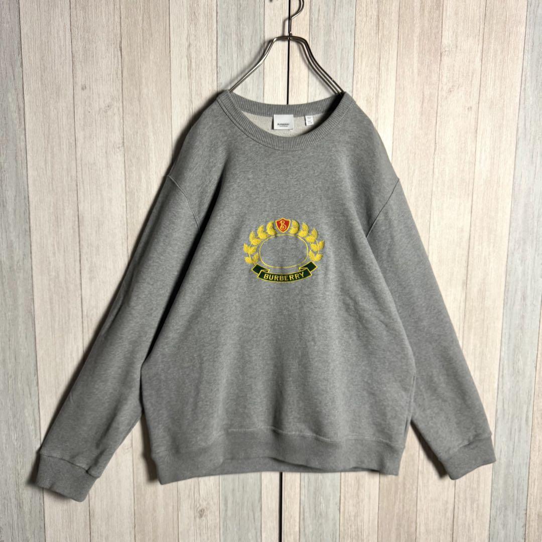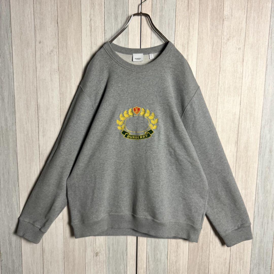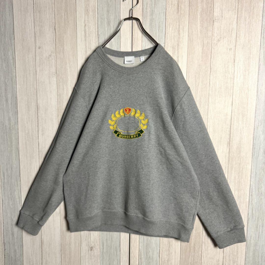 【希少イタリア製・2XL】現行 BURBERRY バーバリー エンブロイダリー 刺繍センターロゴ クルーネック スウェット トレーナー グレー