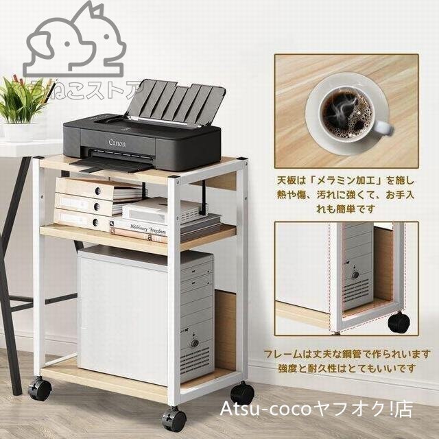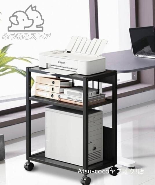 プリンターワゴン CPUワゴン プリンタラック 3層  PCワゴン 多機能収納 収納ラック オフィス収納ラック キャスター付キ ブラック