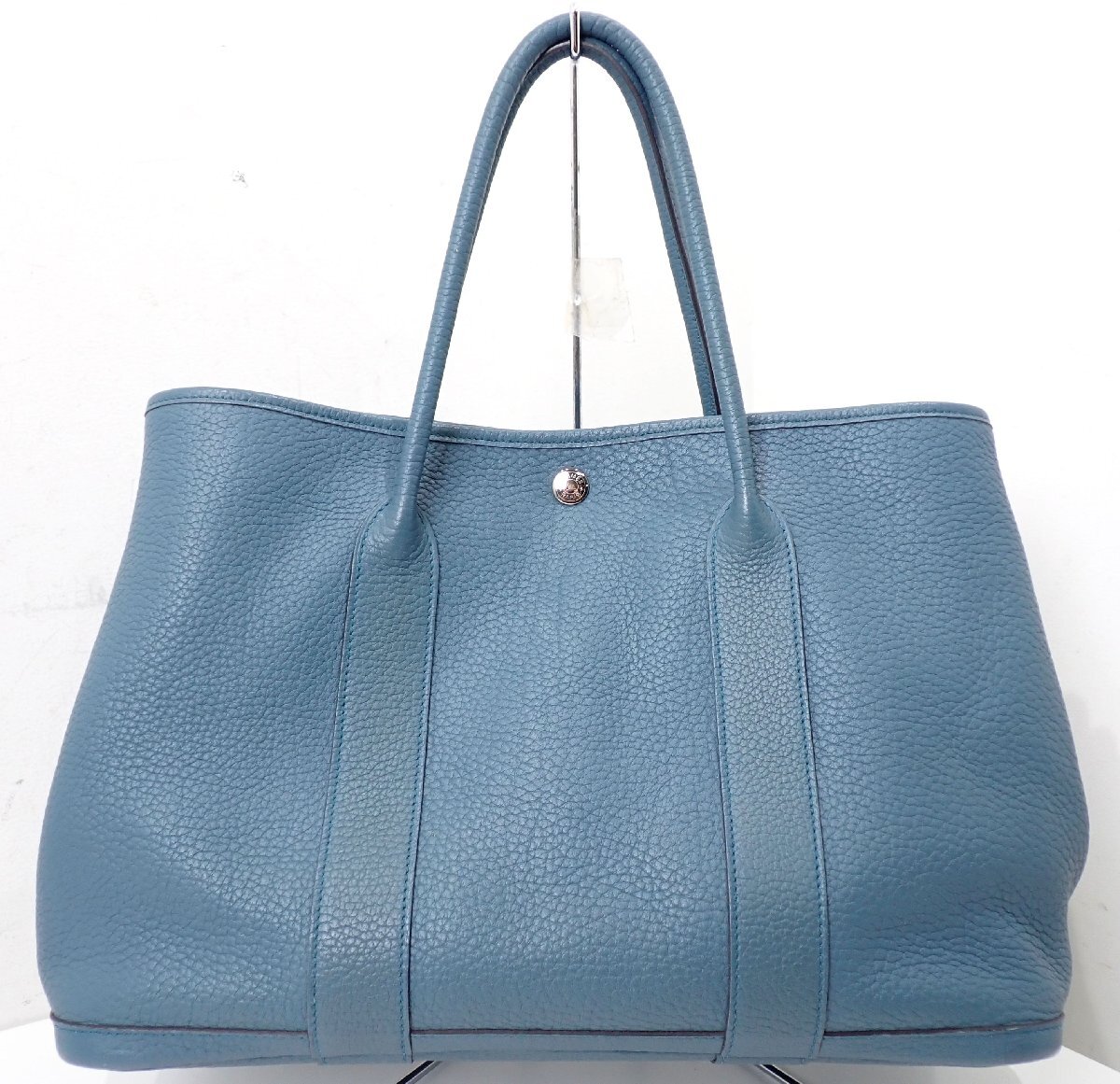 フルレザー!美品 エルメス ガーデンパーティ36 PM ヴァッシュカントリー レザー トートバッグ ブルートンペット □Q
