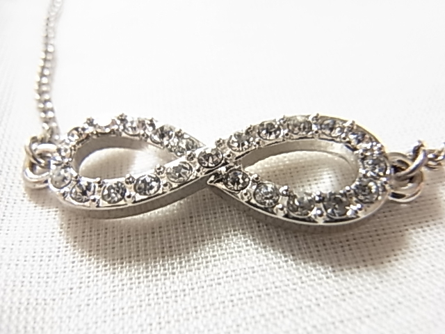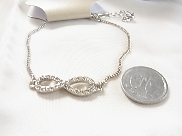 新品未使用品 台紙付き Natasha ナターシャ キラキラクリアラインストーンが輝く 無限大のような形∞ 銀色系 ブレスレット☆