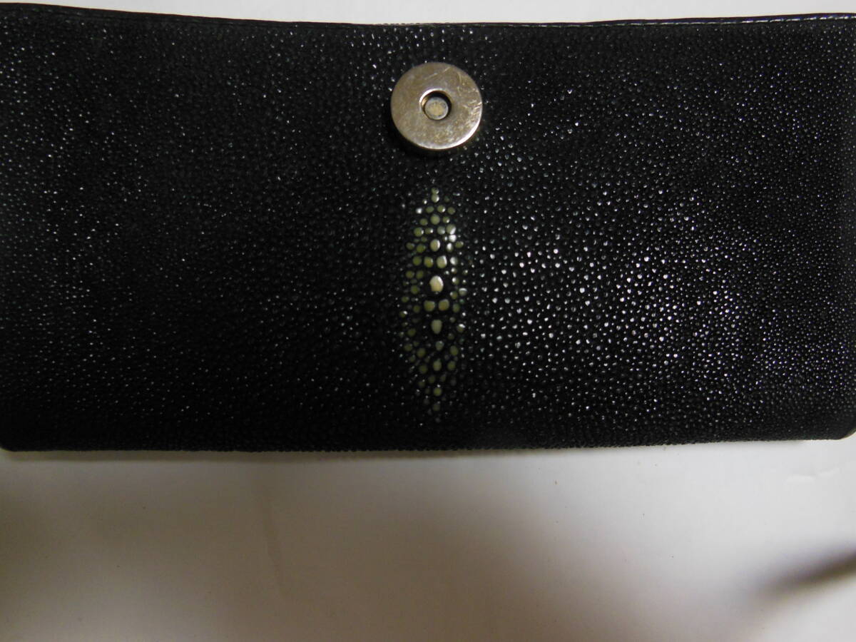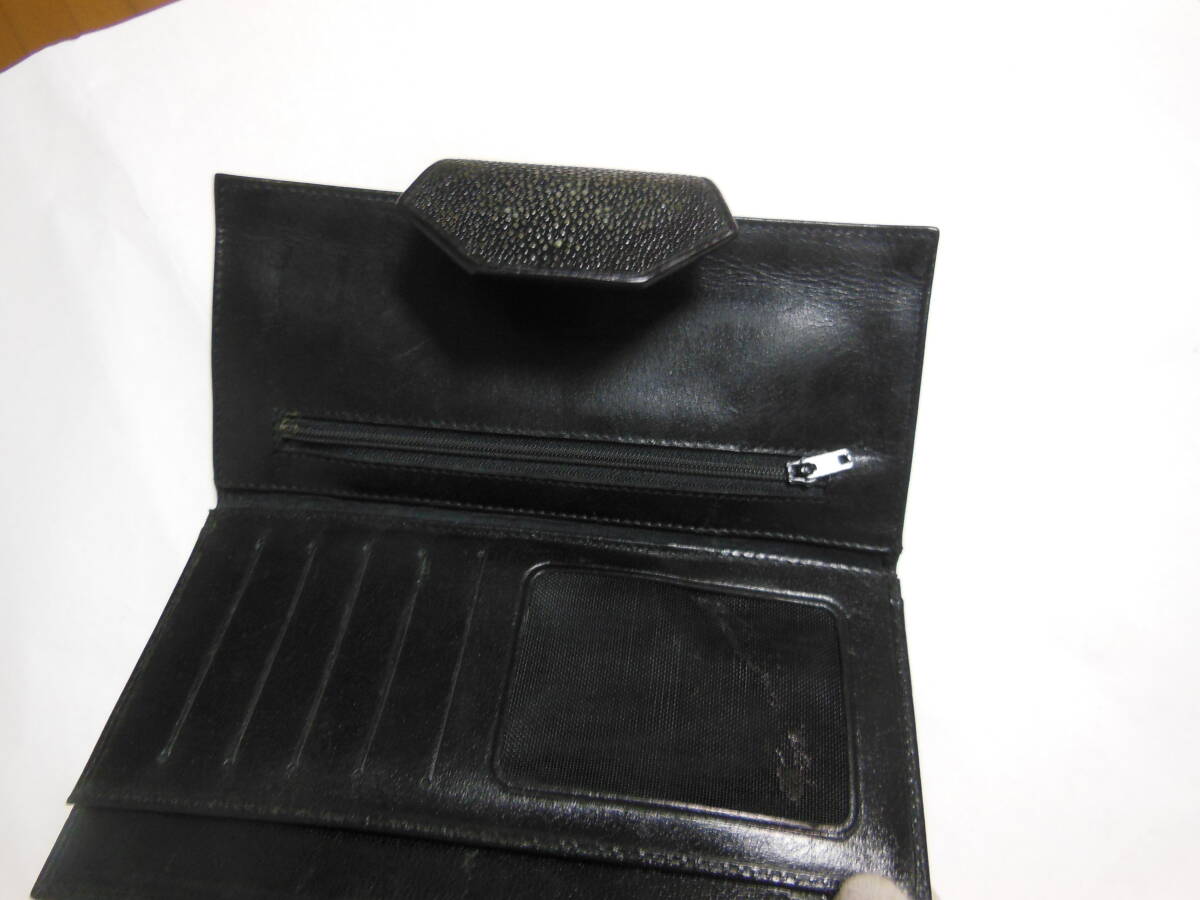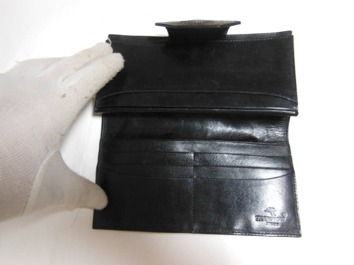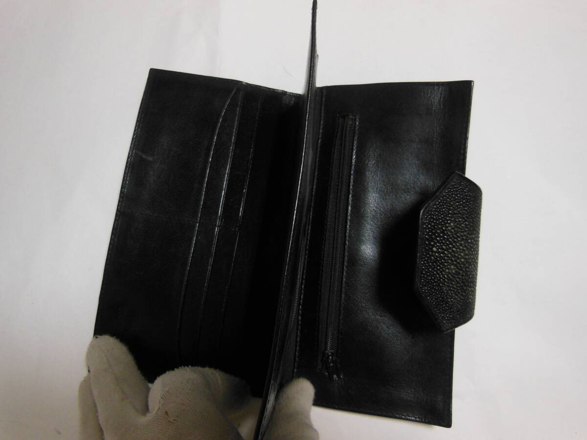 TRAMPIONI 高級エキゾチックレザー男性用長財布・小銭入れあり エイ革・オールレザー ブラック 送料無料