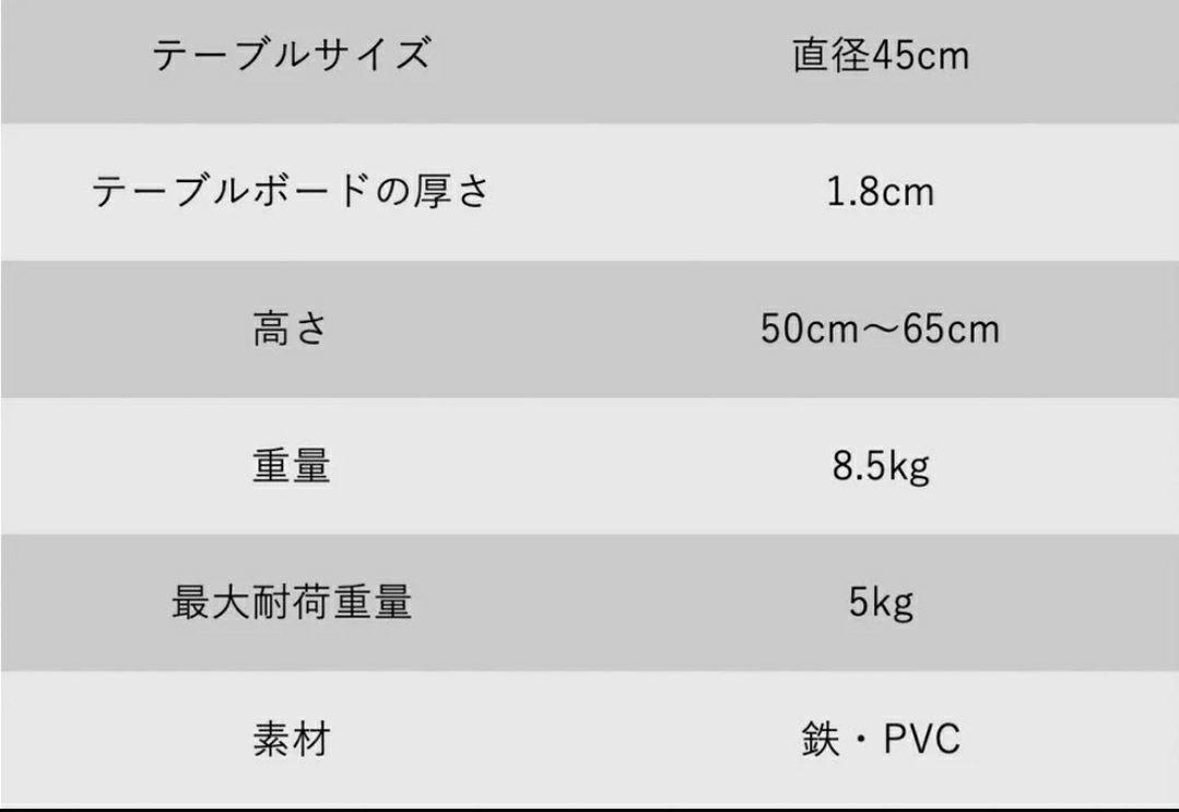 直径45cm× 高さ50-65cm 重さ:8.8kg 最大耐荷重:5kg 組み立て説明書付きで簡単組み立て シンプルで飽きのこないデザイン。