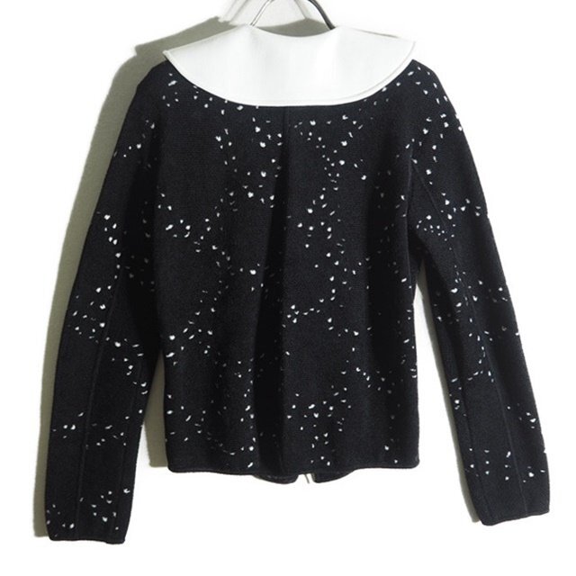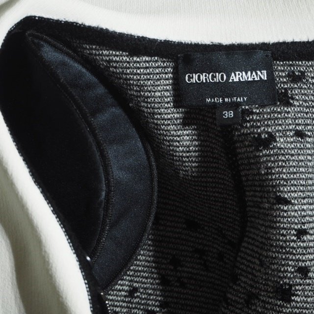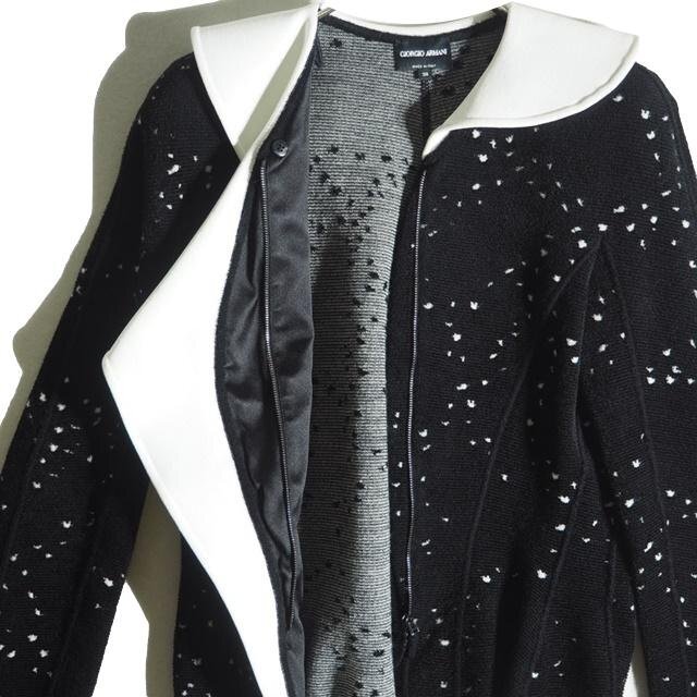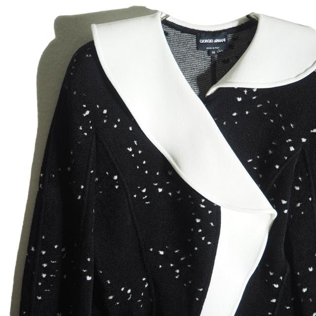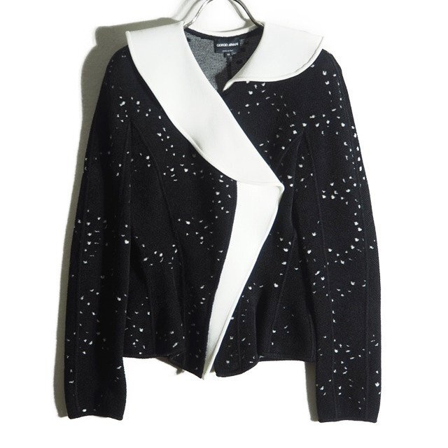 M8577h3 ▼GIORGIO ARMANI ジョルジオアルマーニ▼ レーヨン ウール 襟付き ニットジャケット ブラック ホワイト 38 / 黒白 秋冬
