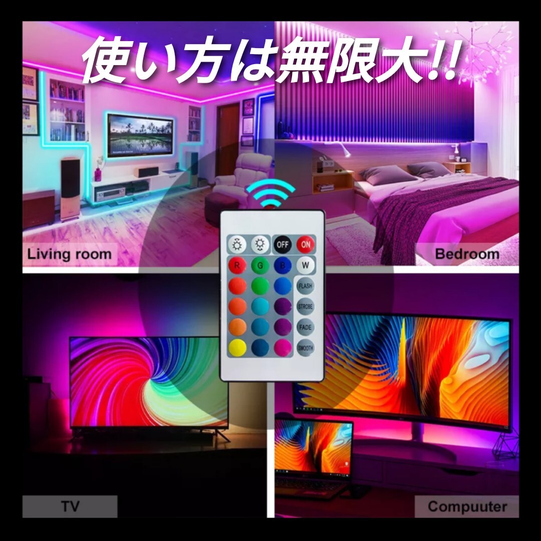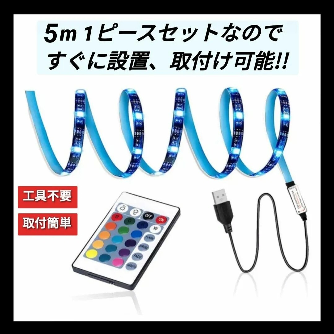 こちらは5m1ピースセットで、リモコンにリモコン電池付きとなっていますので届いてすぐに設置して使用可能となっております(*^^*)
