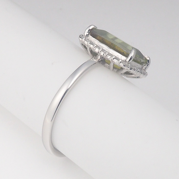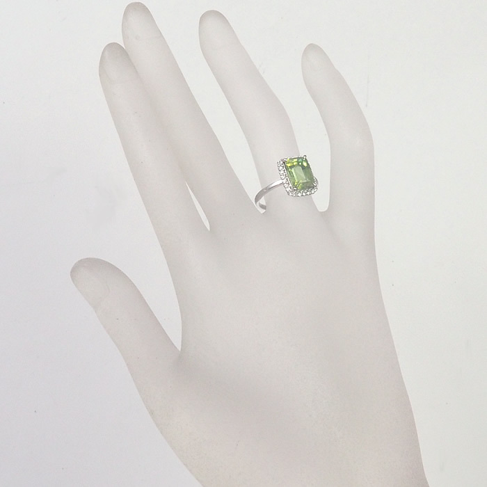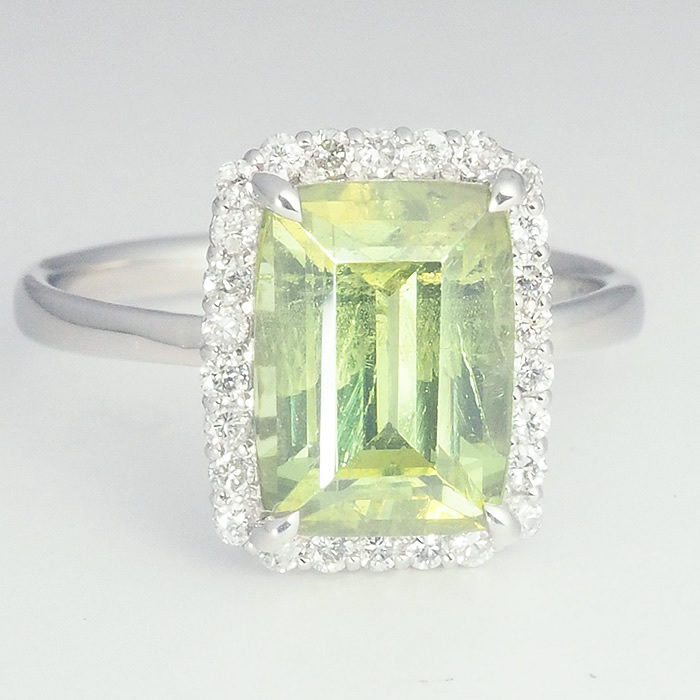 潜在能力を引き出すパワーストーンとしても人気の「スフェーン」。イエローの中からほんのりオレンジやグリーンの反射が見られる美しいリングです。