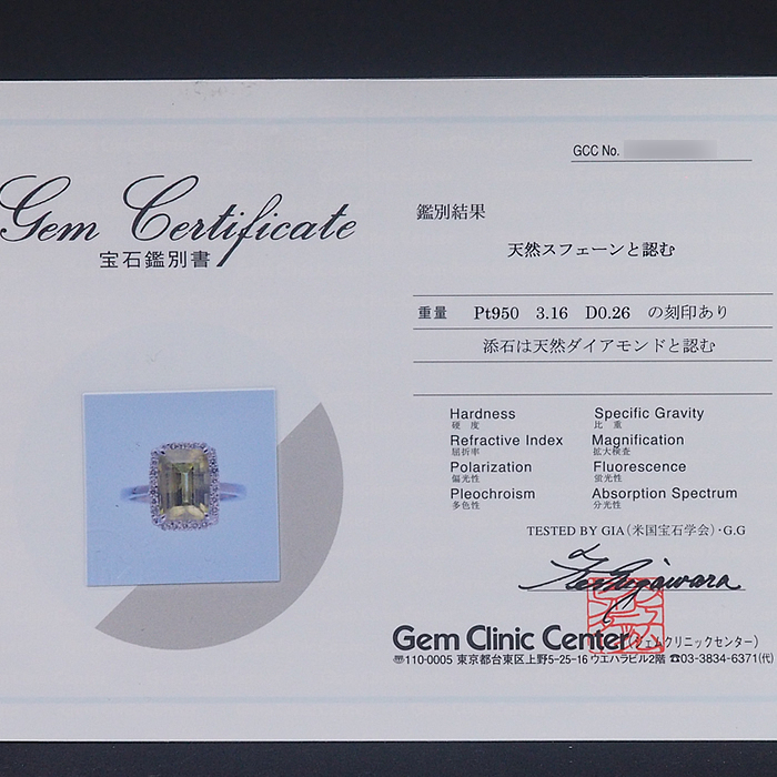詳細:ノーブランド スフェーン/3.16ct ダイヤ/0.26ct Pt950 プラチナ リング 12.5号 鑑別書付き 仕上済