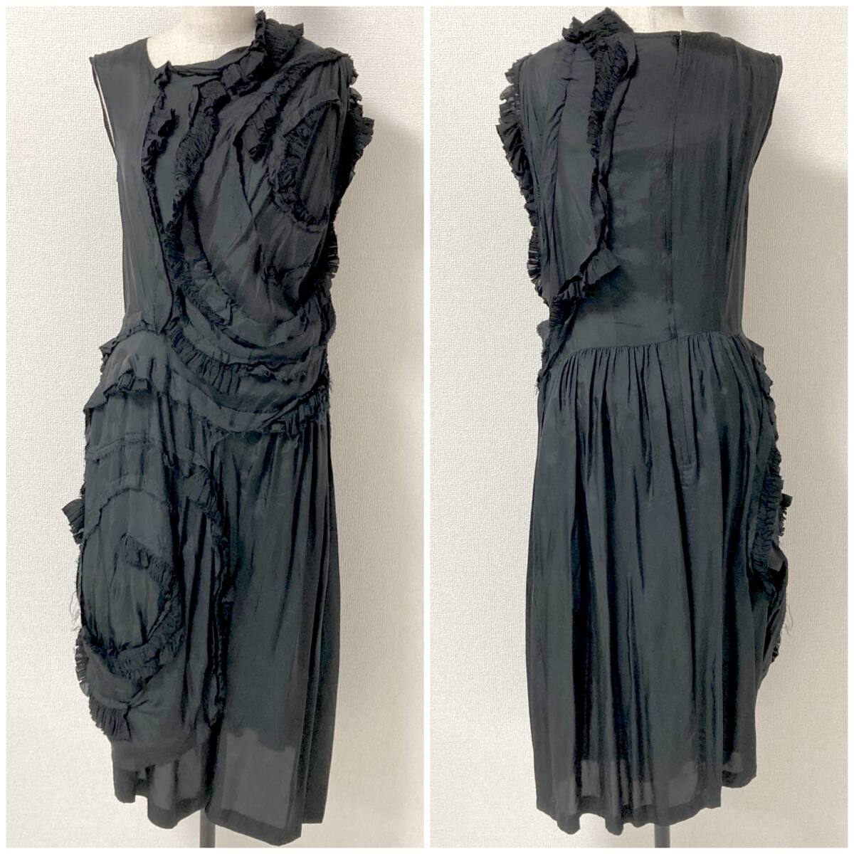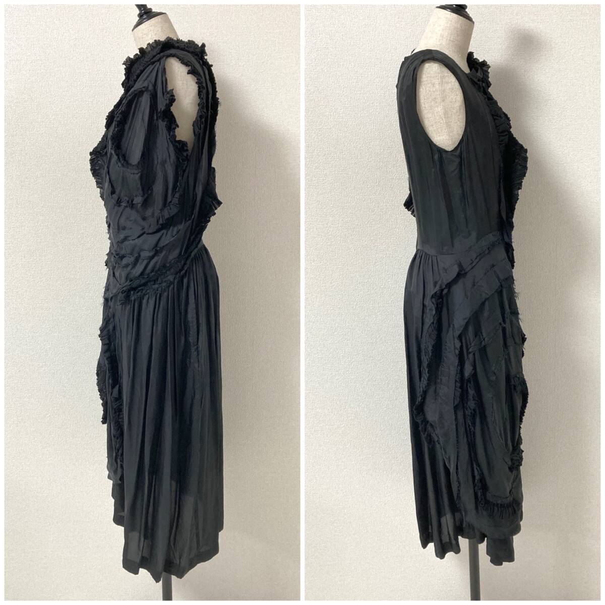 薔薇と血 AD2014 COMME des GARCONS 15SS フリル装飾 ノースリーブ ワンピース ブラック