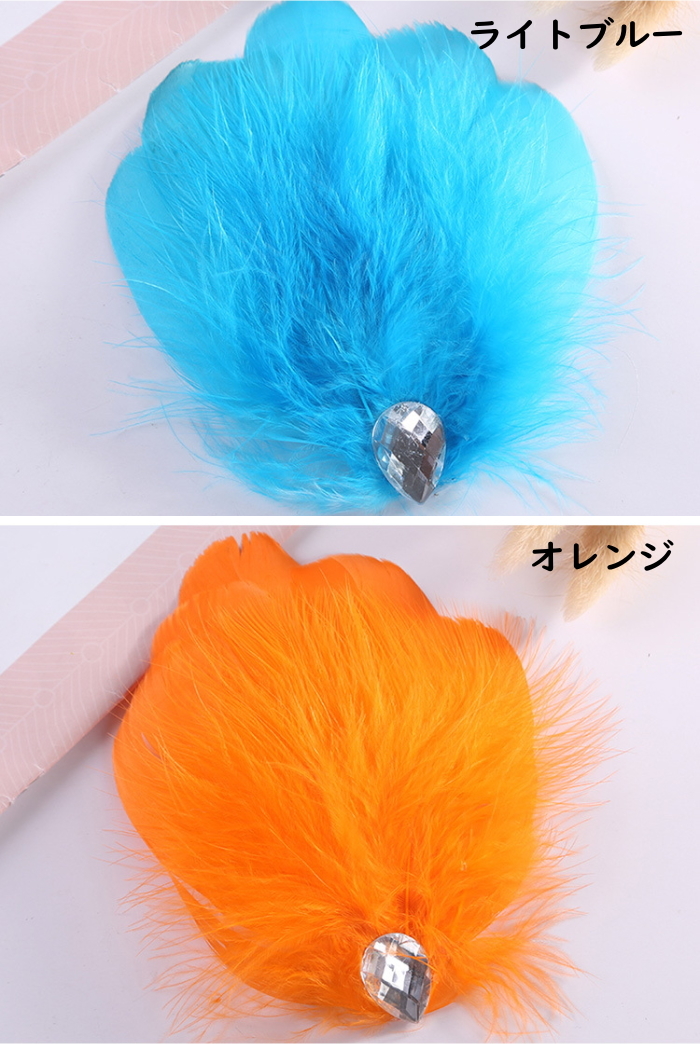 ・天然の羽根を使用している為、染色の色合いやボリュームや形状には個体差がございます。