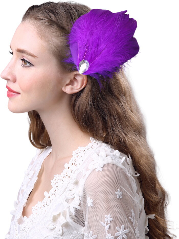 羽根 フェザー ヘアアクセ 【パープル】ビックコサージュヘッドドレス 髪飾り ダンス バレエ バレリーナ cy7-pa