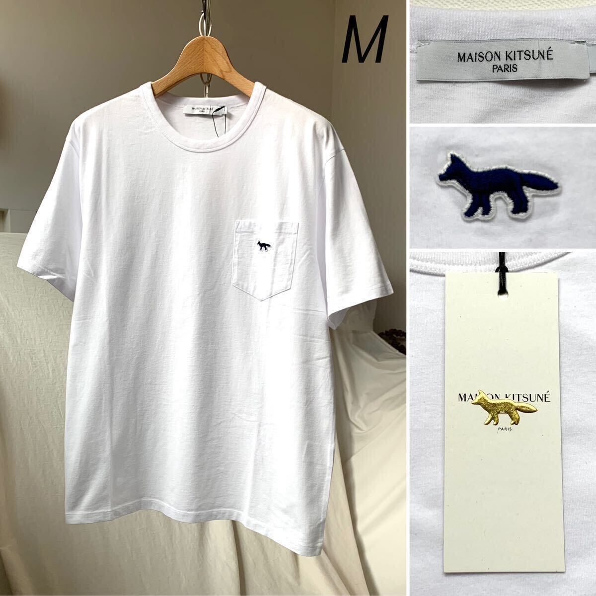 MAISON KITSUNEの2022SSの胸ポケットにネイビーフォックスの刺繍が施されたポケットTシャツ、NAVY FOX PATCH CLASSIC POCKET TEE-SHIRTです。