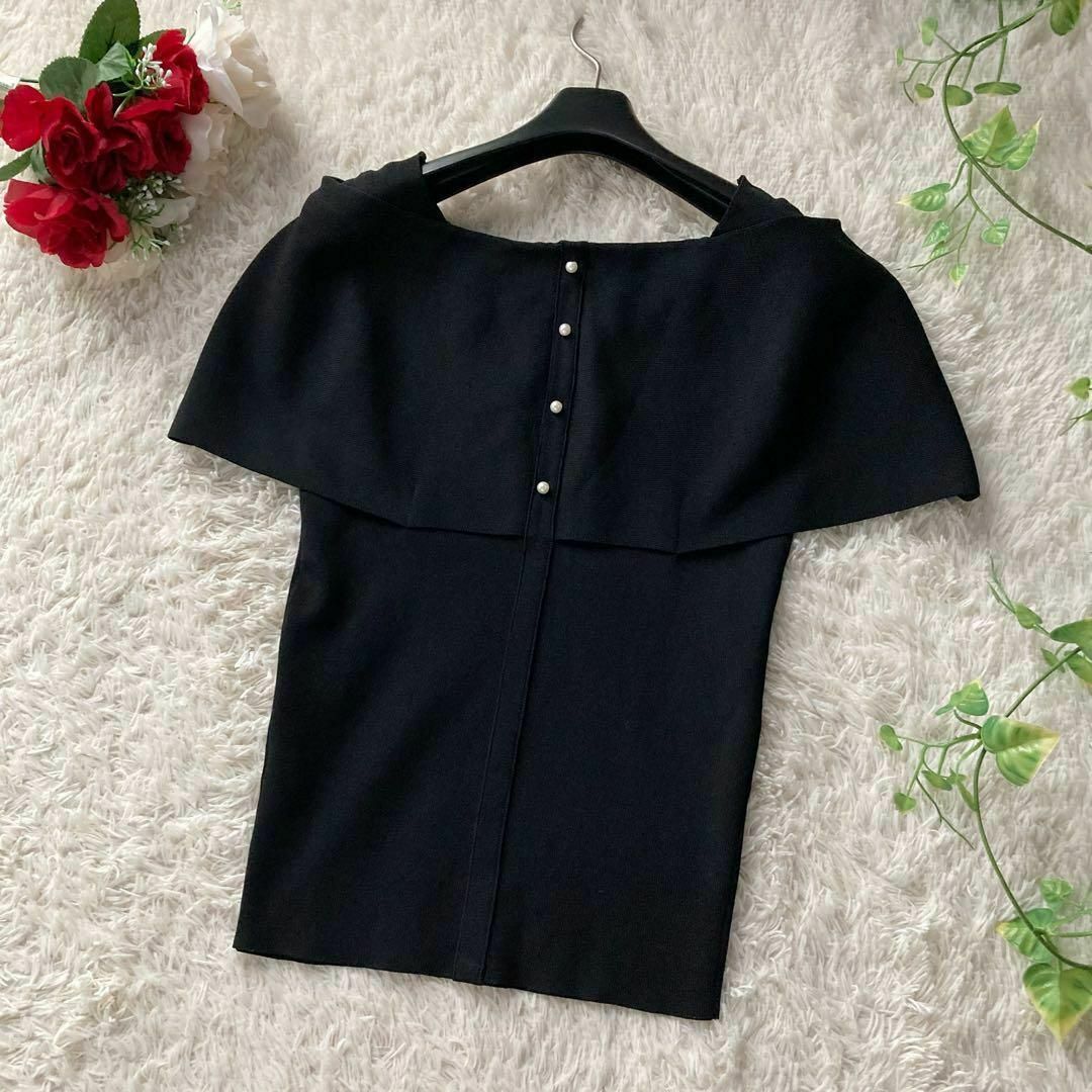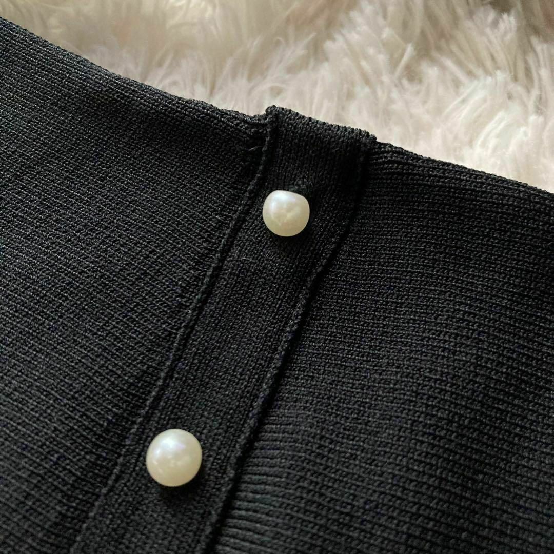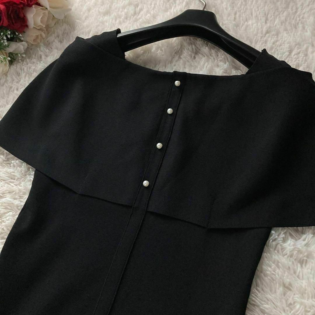大きなバーサカラーがポイントのサマーニット。二の腕をすっぽり包んでくれて華奢見え効果も。