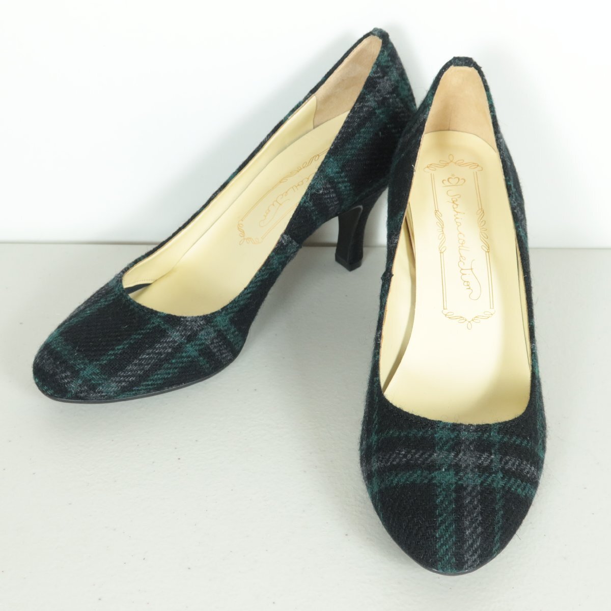 【未使用品】Sophia collection ソフィアコレクション★パンプス ツイード調 秋冬物 サイズ23cm ヒール7cm 黒×緑×グレー系 z3023