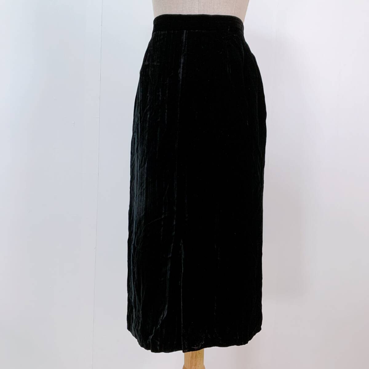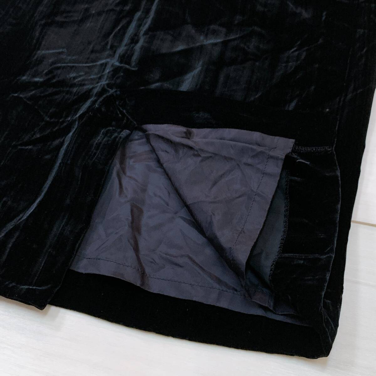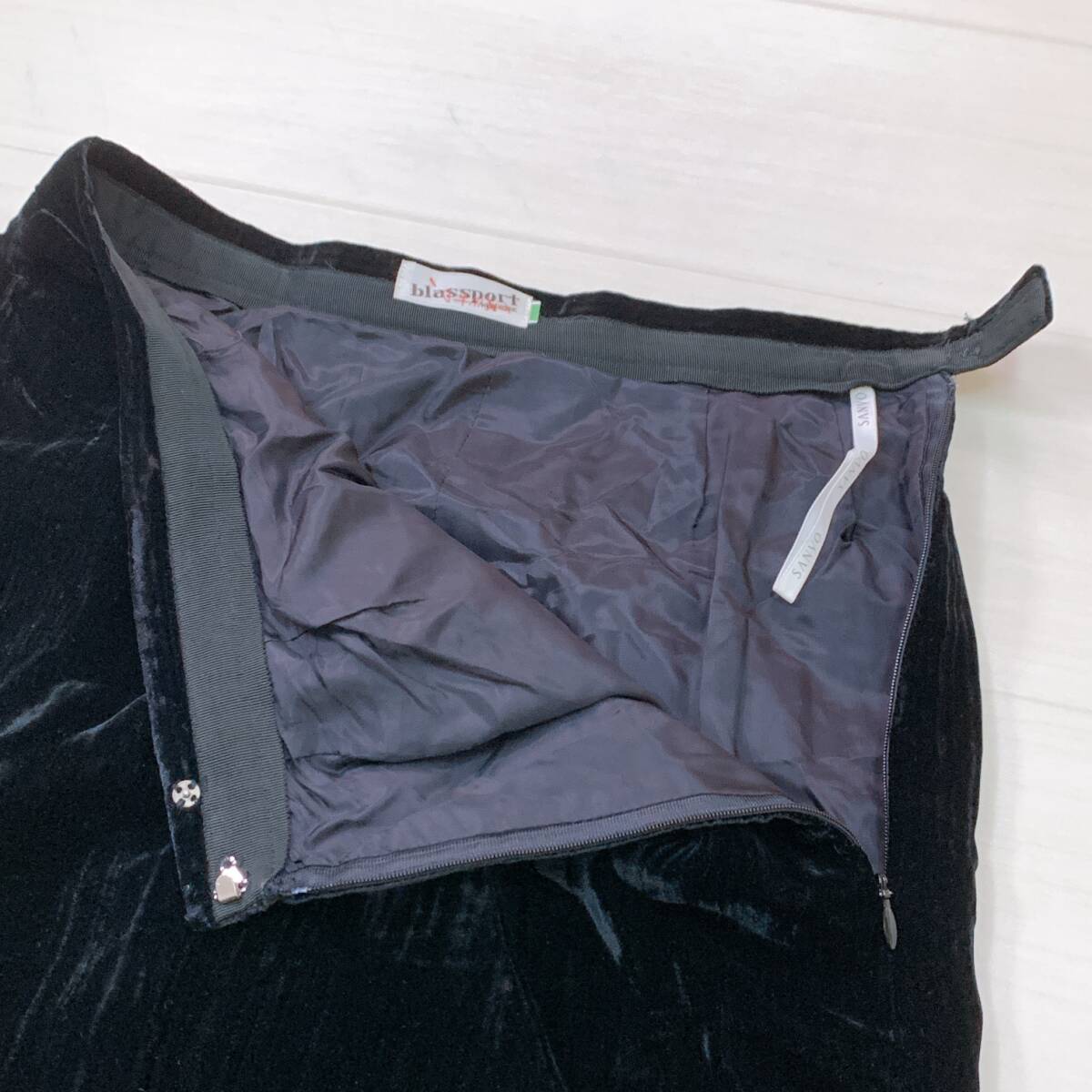 YH1668 blassport レディース ひざ下丈 スカート ベロア調 光沢 スリット 裏地あり ブラック 黒 お洒落 きれいめコーデ 万能 USED 古着