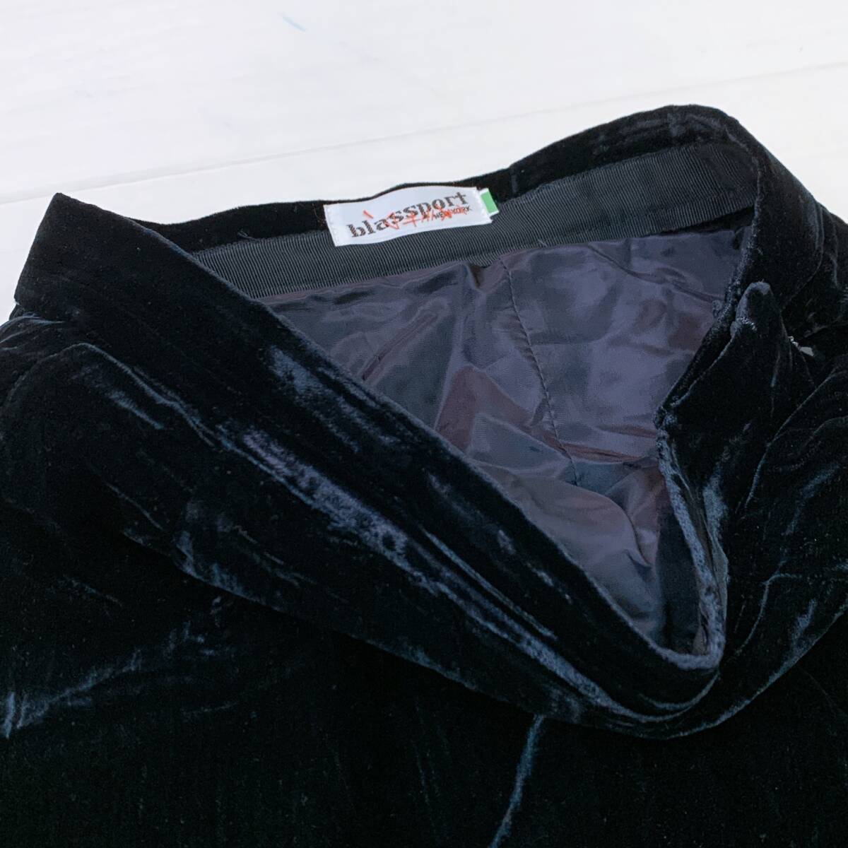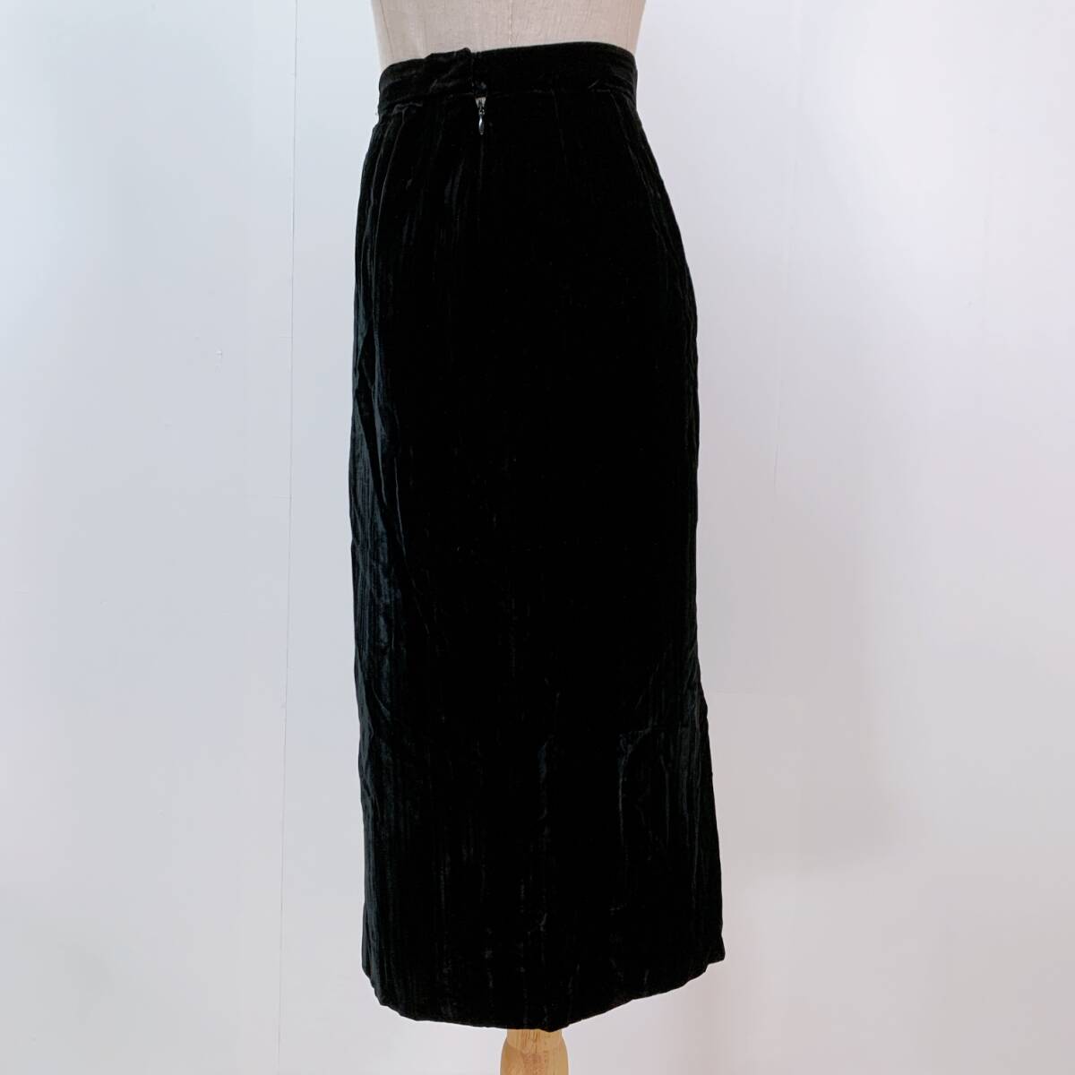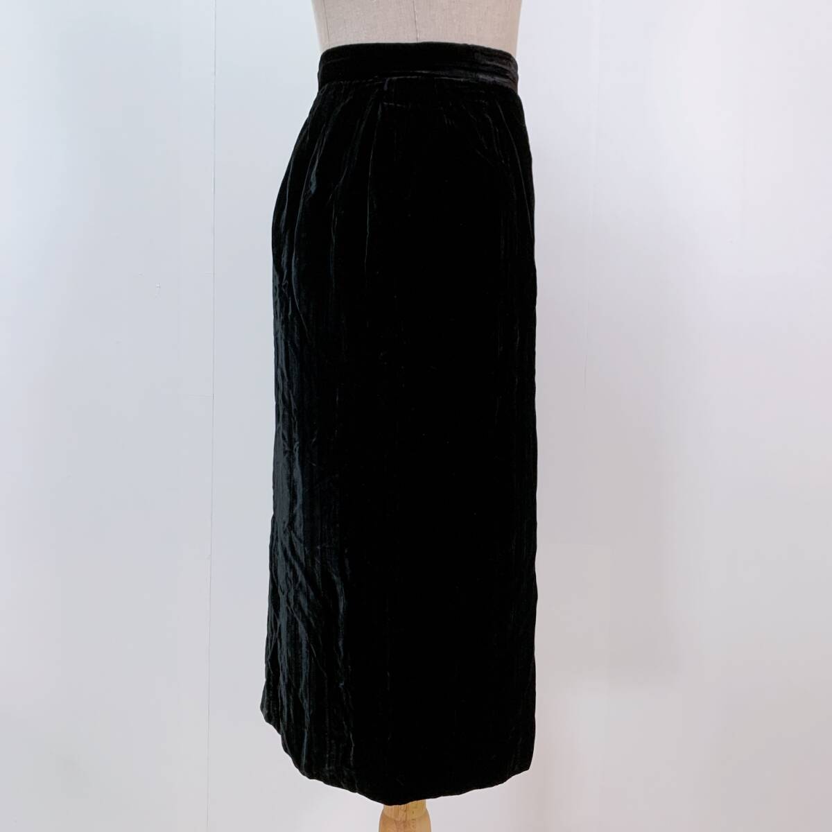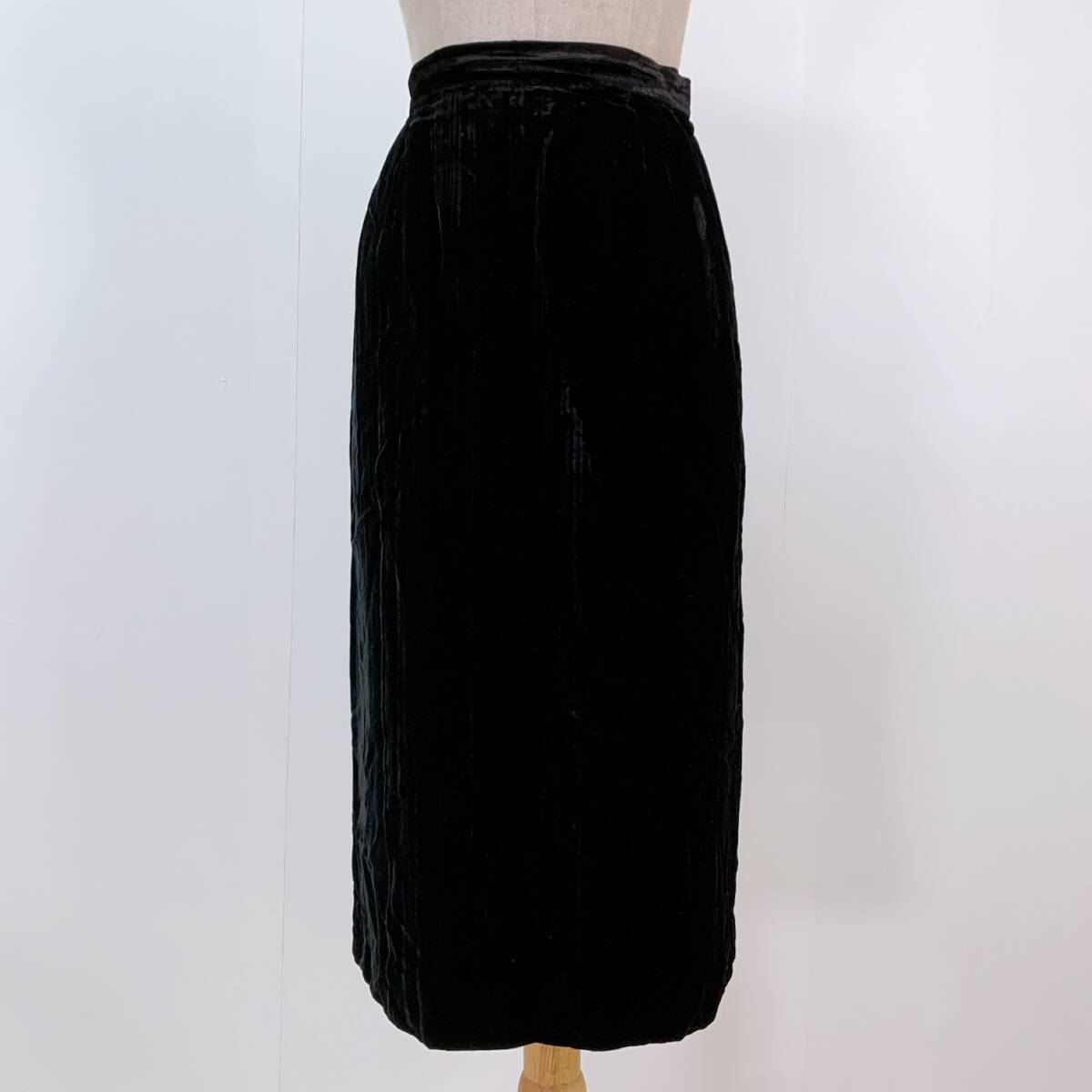 YH1668 blassport レディース ひざ下丈 スカート ベロア調 光沢 スリット 裏地あり ブラック 黒 お洒落 きれいめコーデ 万能 USED 古着